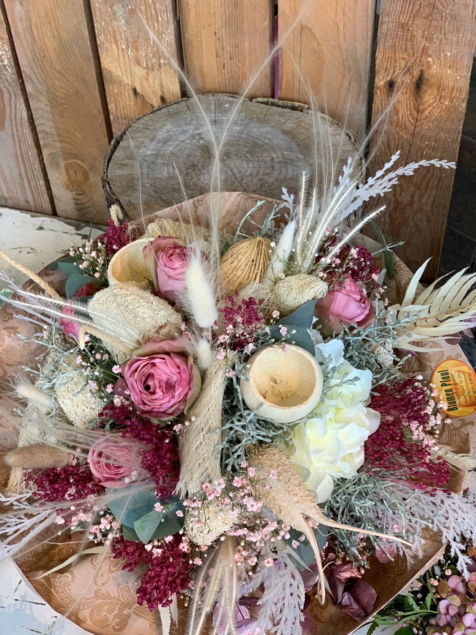 Natürlich & elegant – dezente Farbtöne mit saisonalen Blumen für eine sanfte, stilvolle Geste.