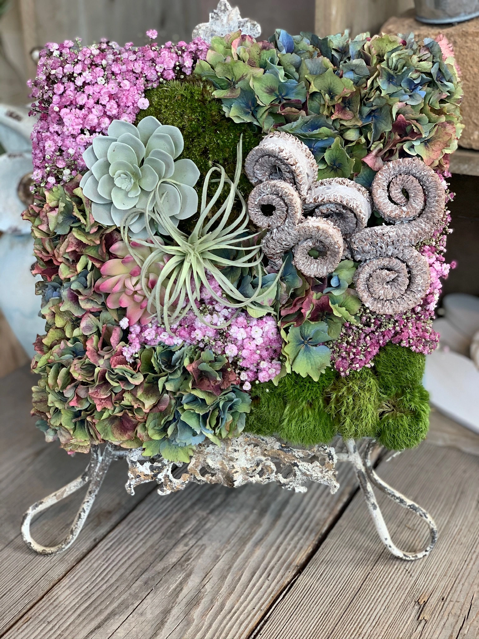 Mit stilvollen Tischgestecken, Blumengirlanden, hängenden Arrangements und floralen Highlights für den Raum.