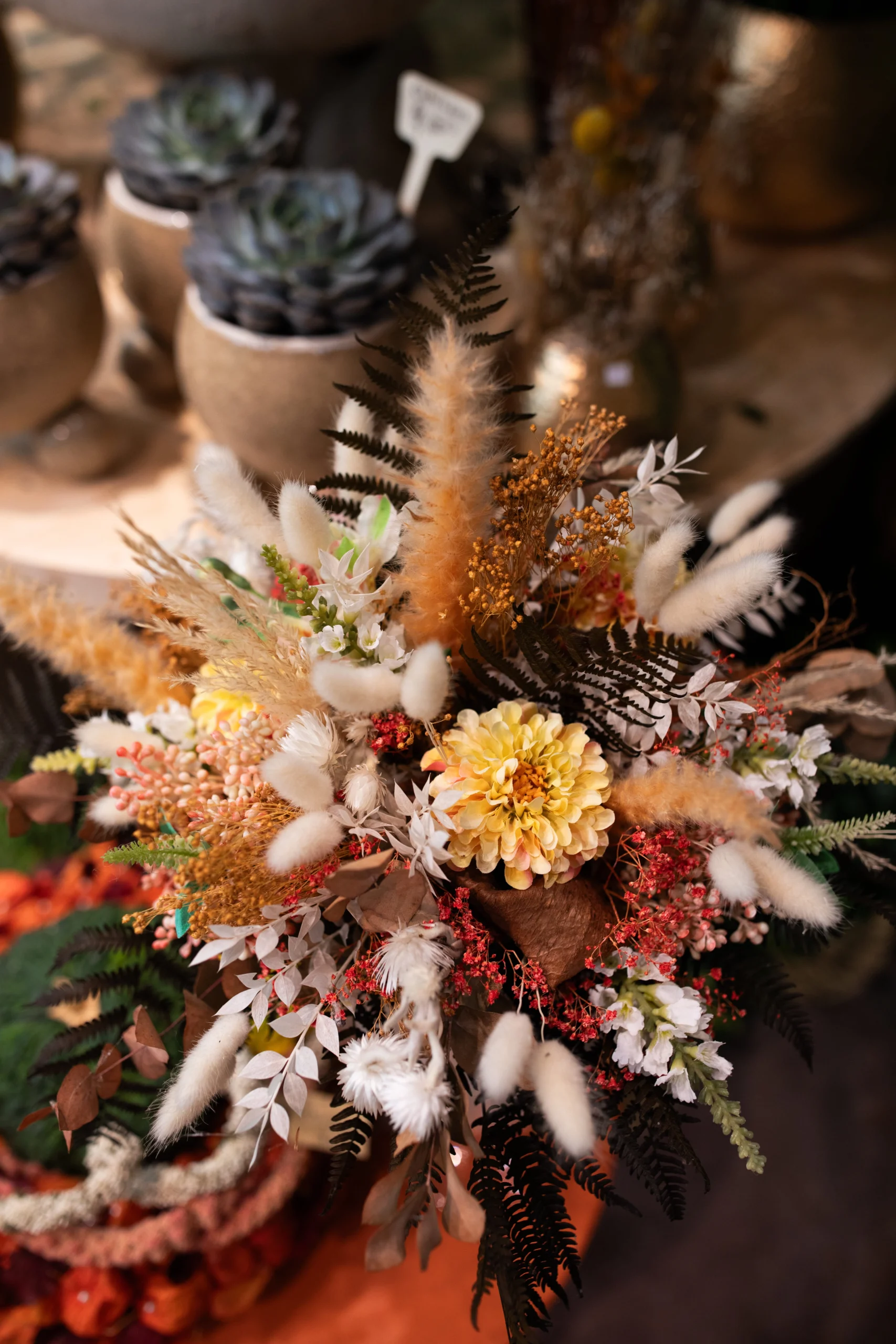 Neben frischen Blumen bieten wir auch stilvolle Trockenblumen-Arrangements, die lange halten und den Charme des Herbstes dauerhaft bewahren. Pampasgras, Eukalyptus, Weizenähren und Hagebutten schaffen eine herbstliche Stimmung, die Wochen und Monate anhält.