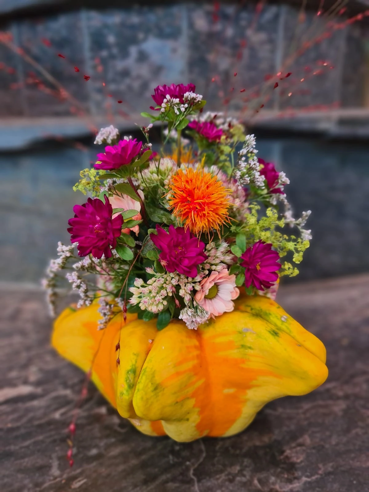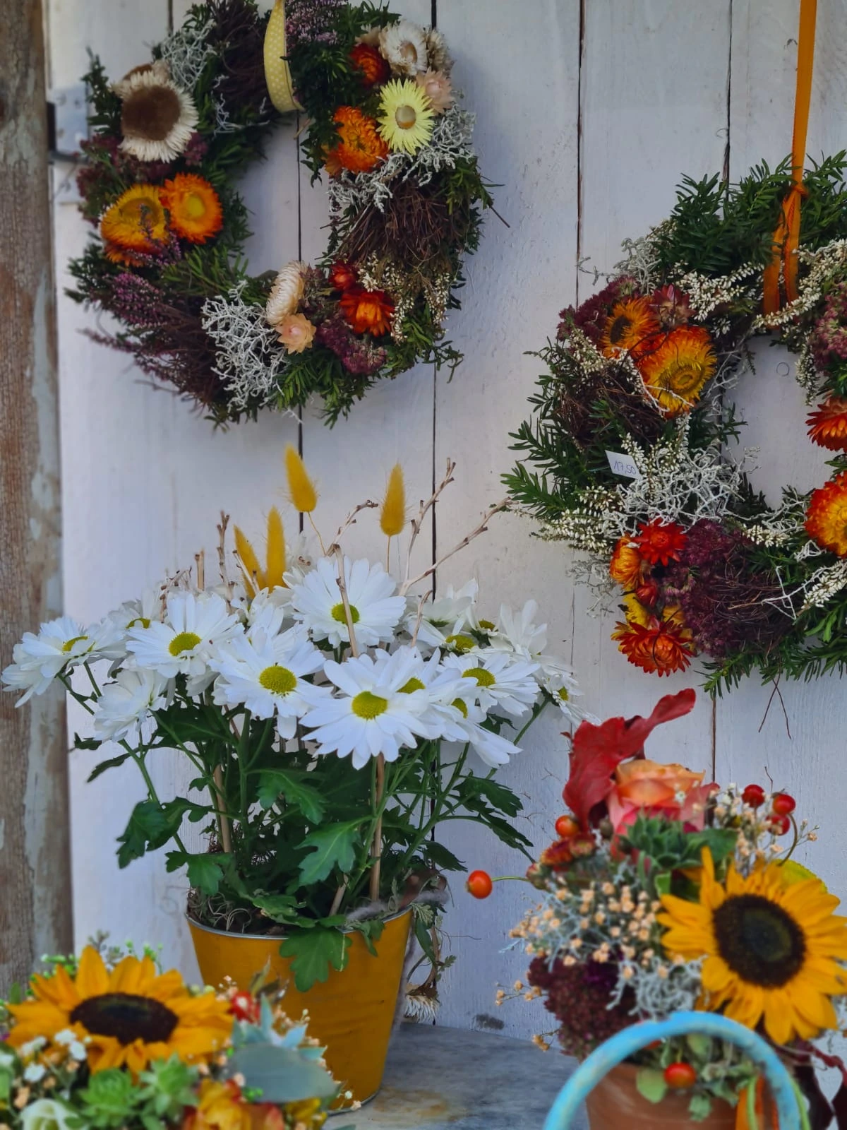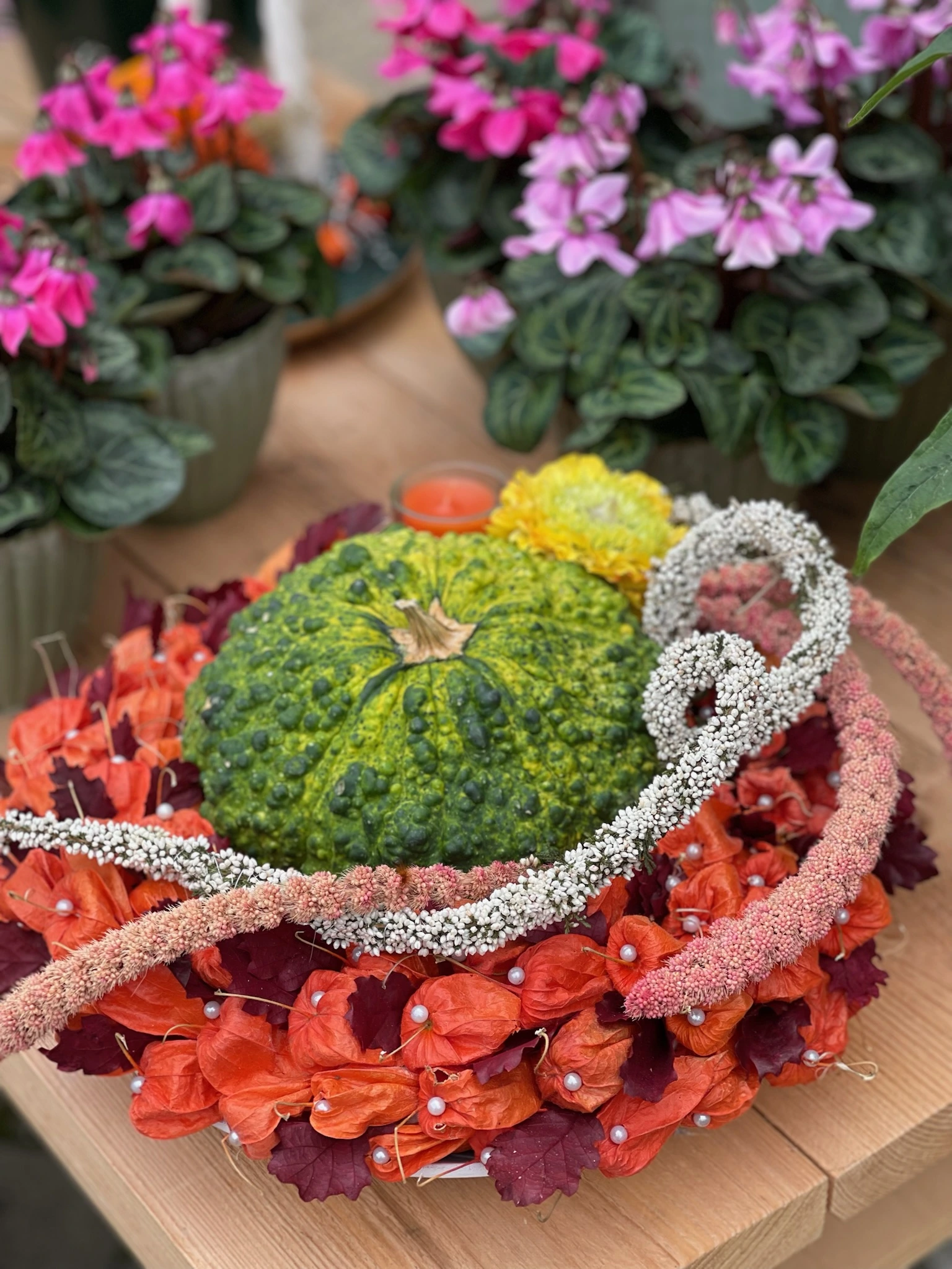 Ja, wir fertigen herbstliche Sträuße, Kürbisdekorationen und Trockenblumen-Arrangements nach Ihren Wünschen.