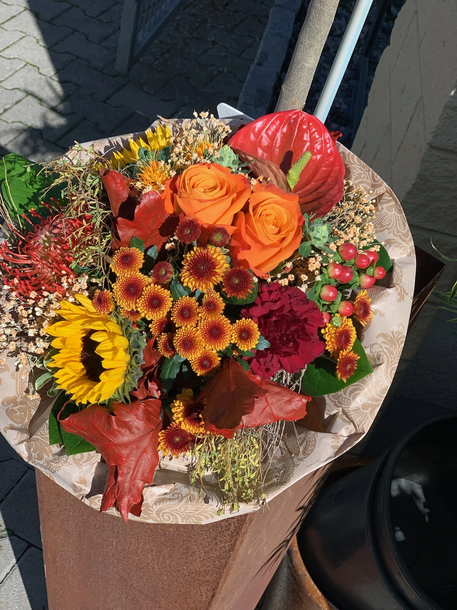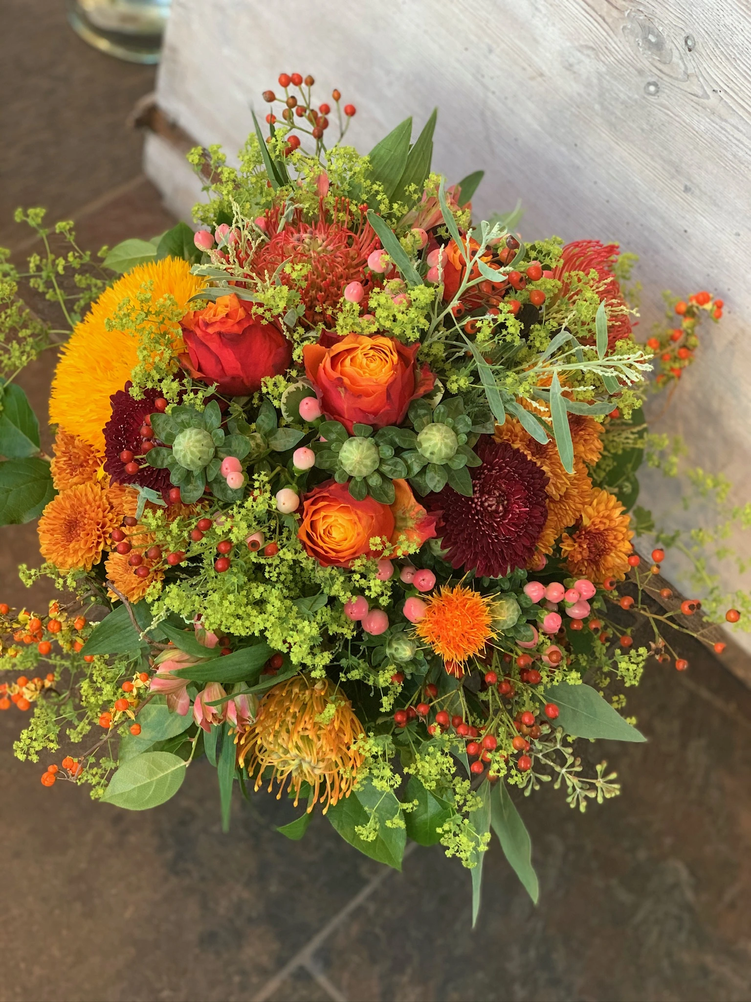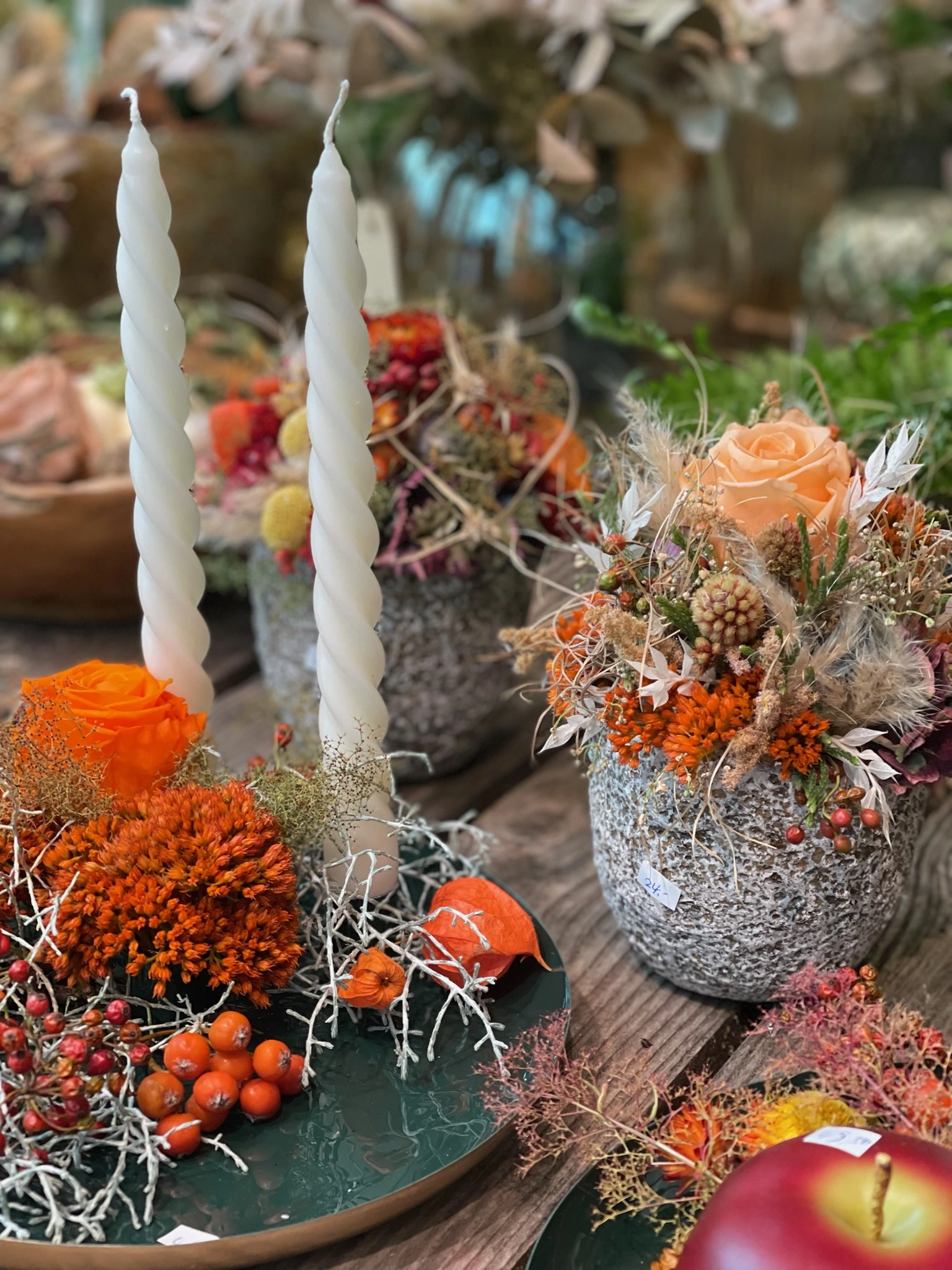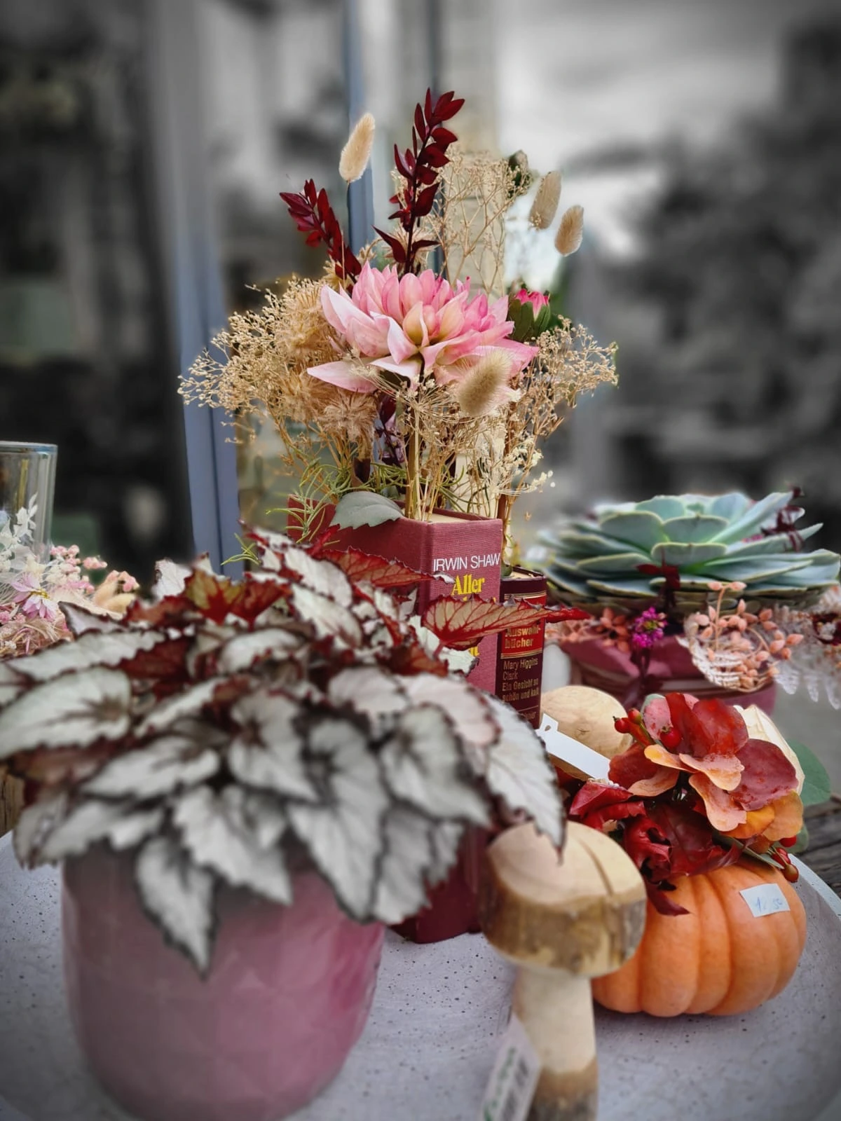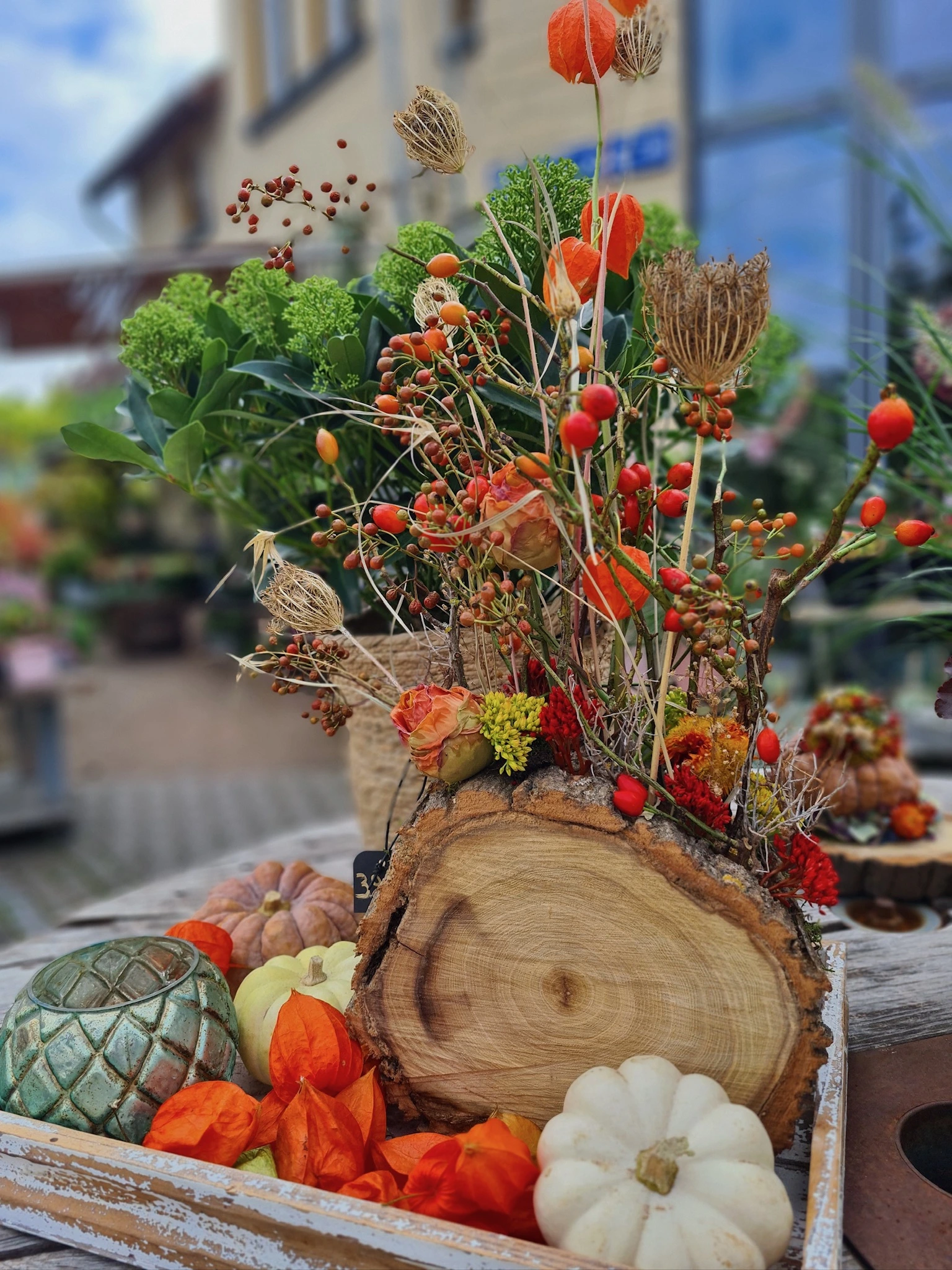 Unsere Floristen beraten Sie gerne und kreieren maßgeschneiderte Blumenkunstwerke für Ihre Herbstmomente.