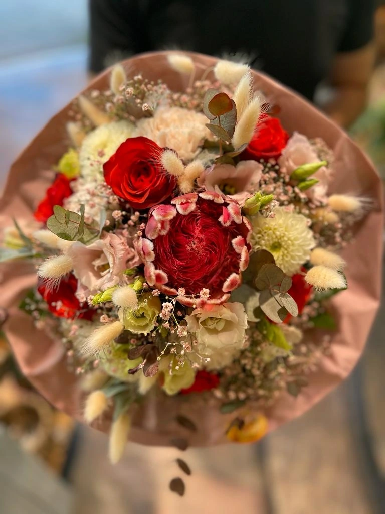 Neben frischen Blumen bieten wir auch stilvolle Trockenblumen-Arrangements, die lange halten und den Charme des Herbstes dauerhaft bewahren. Pampasgras, Eukalyptus, Weizenähren und Hagebutten schaffen eine herbstliche Stimmung, die Wochen und Monate anhält.