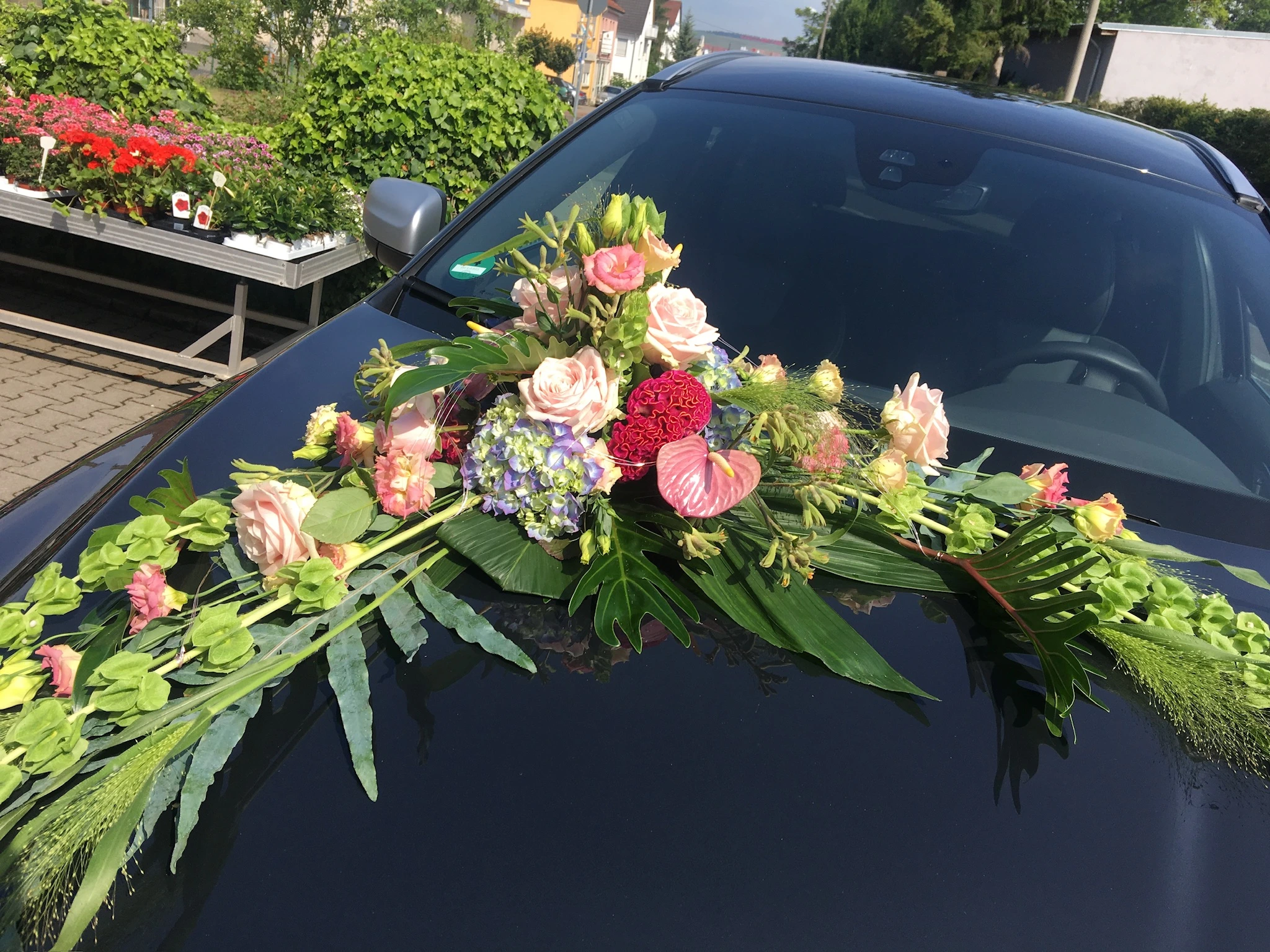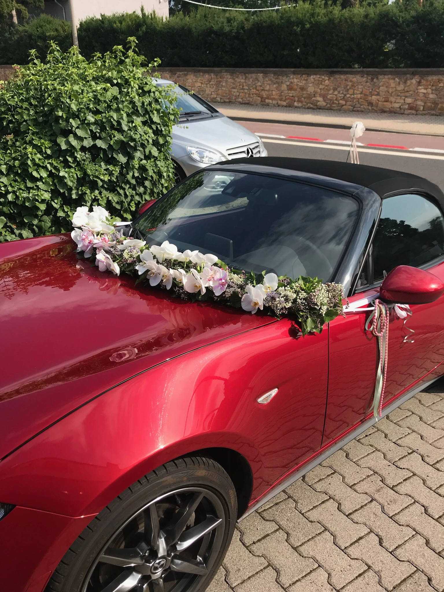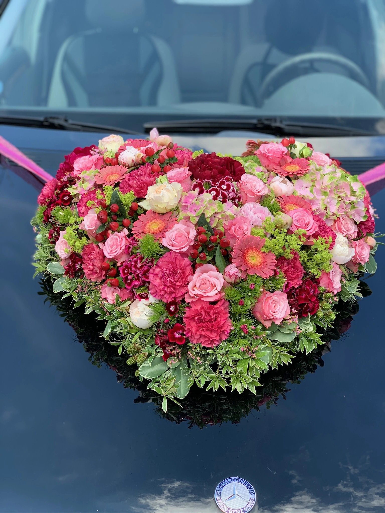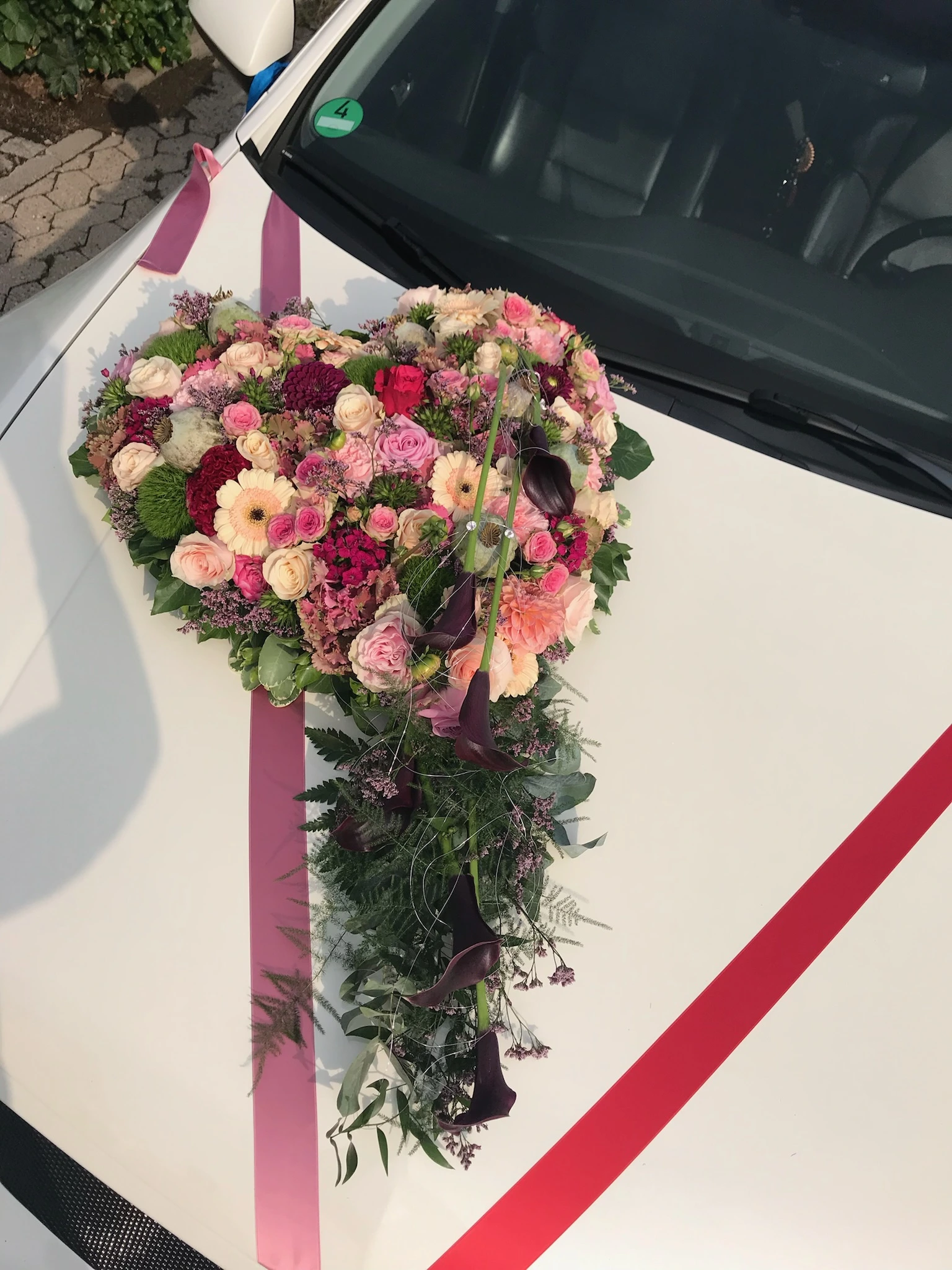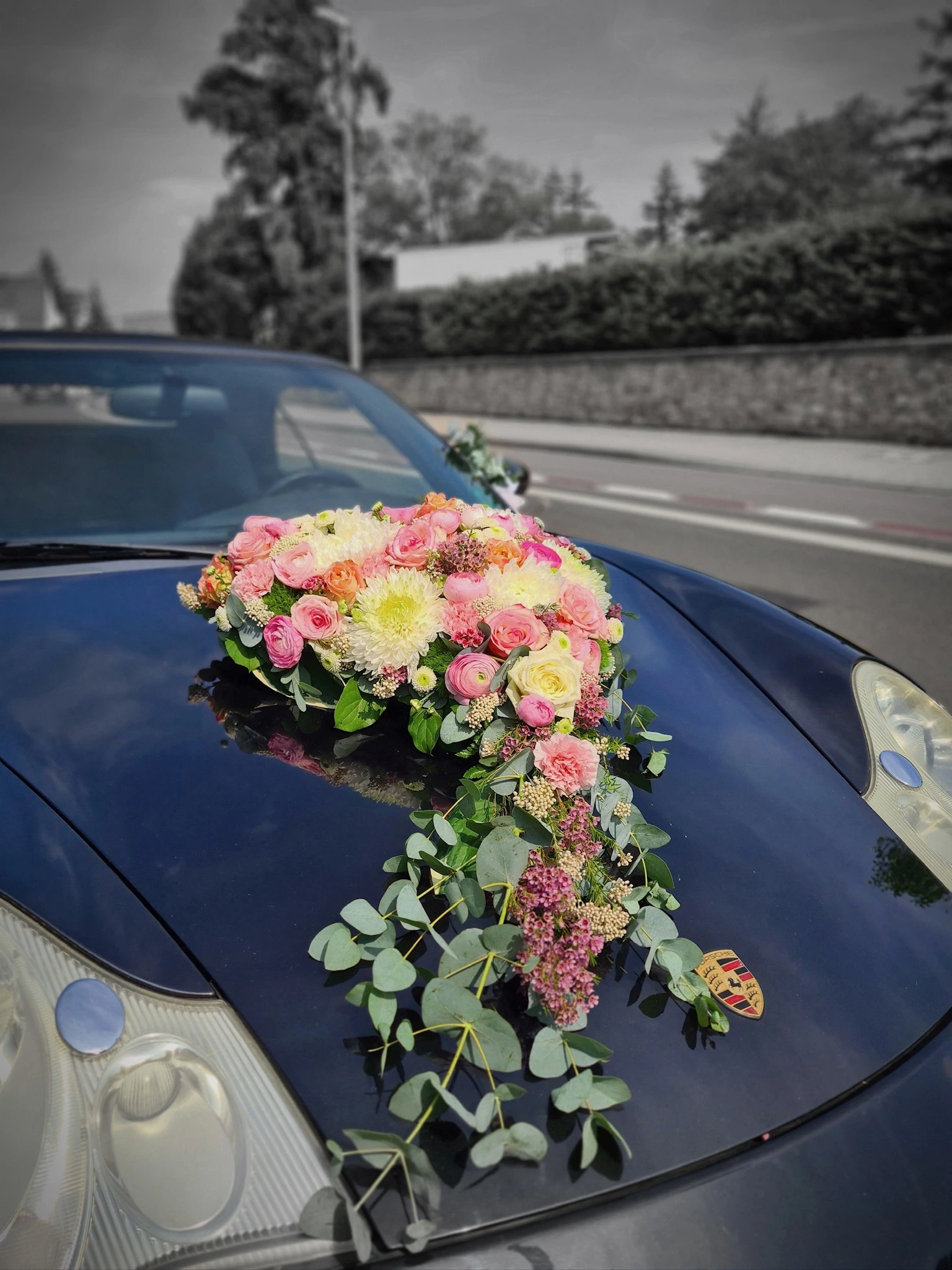 Auch Ihr Hochzeitsauto verdient eine besondere florale Note. Mit stilvollen Gestecken, zarten Blumengirlanden oder blühenden Kränzen sorgen wir dafür, dass Ihre Fahrt zum Altar unvergesslich wird.