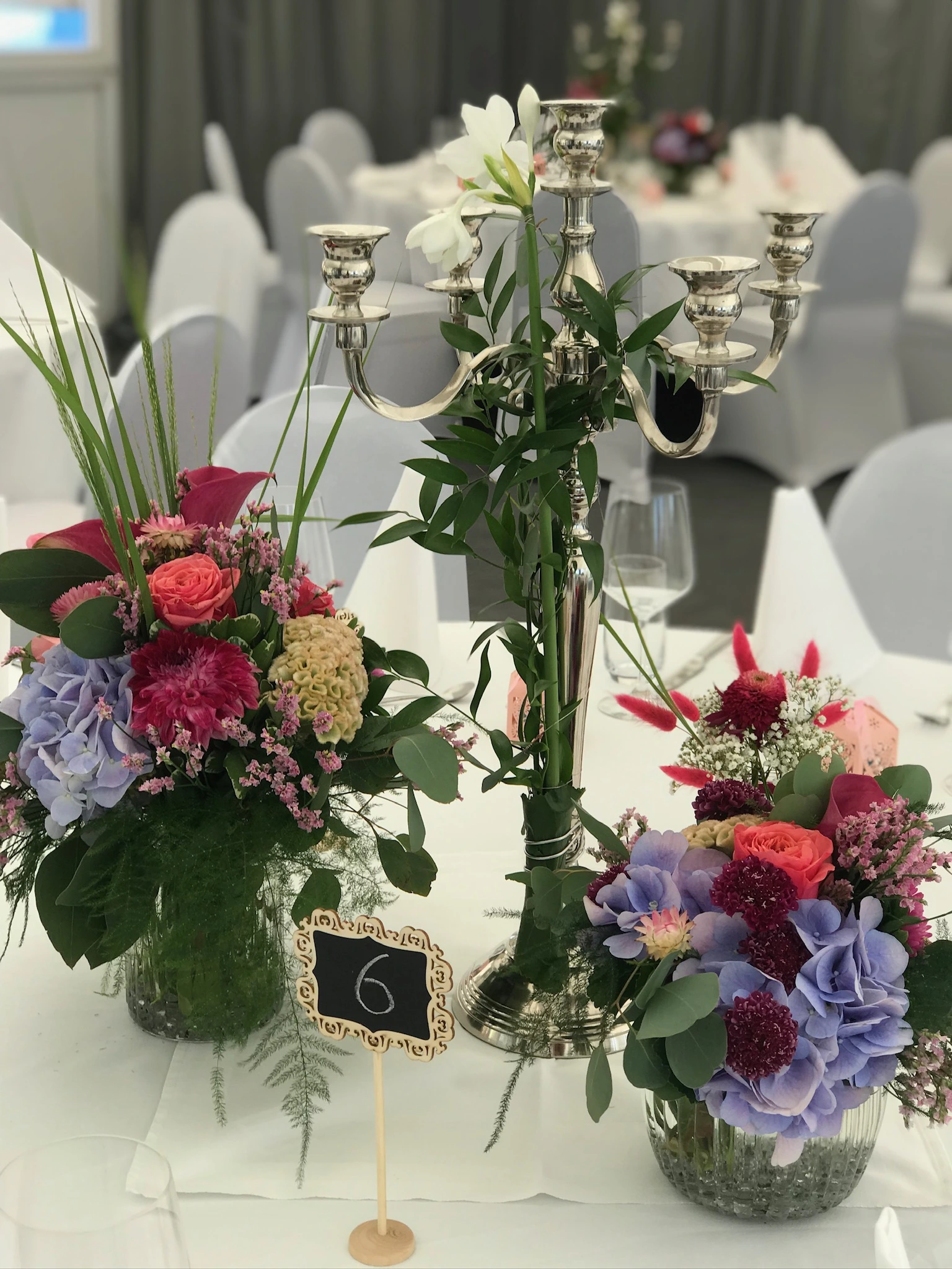 Für Ihre Feier sorgen wir mit eleganten Tisch- und Saaldekorationen aus kunstvollen Blumengestecken, duftenden Girlanden und stilvollen Arrangements für ein harmonisches Ambiente. Auch auf dem Weg ins Glück begleiten wir Sie mit einer romantischen Autodekoration, die Ihr Hochzeitsfahrzeug in eine blühende Schönheit verwandelt. Und natürlich darf das wichtigste Accessoire nicht fehlen: Ihr Braut- und Bräutigamstrauß, perfekt abgestimmt auf Ihren Stil – ob klassisch-elegant, modern oder extravagant. Lassen Sie sich von uns inspirieren und verleihen Sie Ihrem großen Tag eine blumige Note voller Liebe und Eleganz!