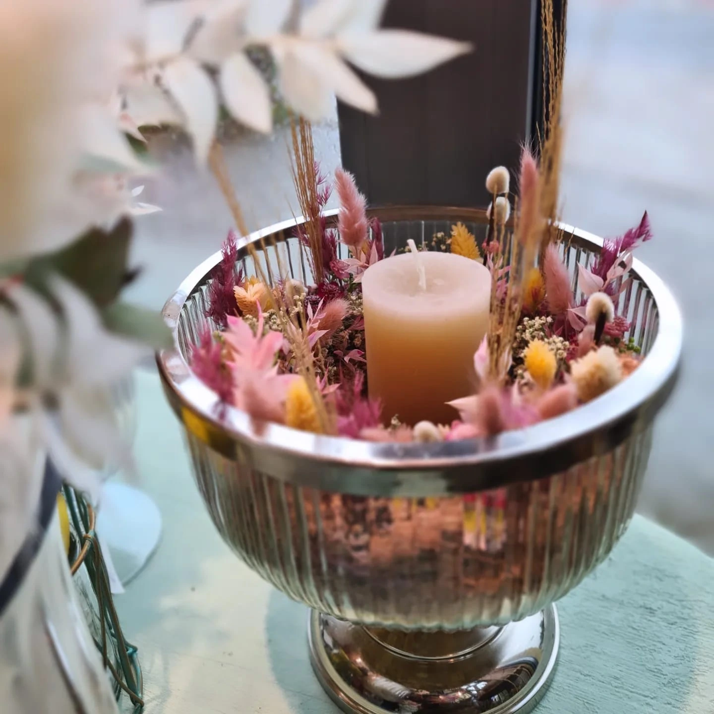 Lassen Sie Ihr neues Zuhause mit einem stilvollen Blumenarrangement erstrahlen und genießen Sie den Zauber eines Neuanfangs.
