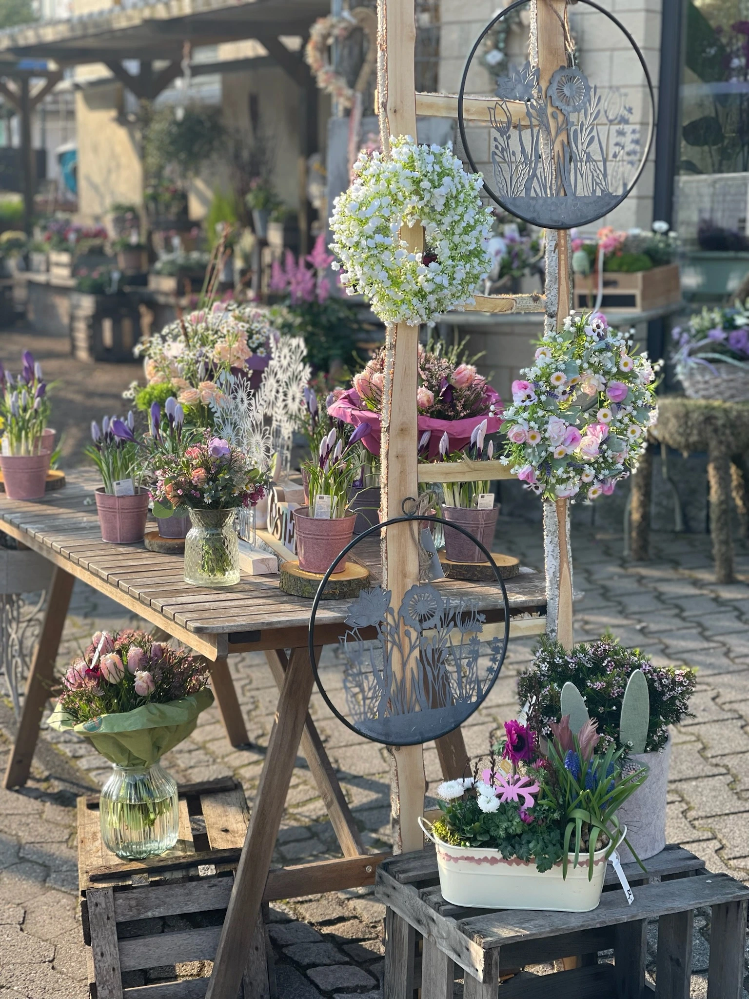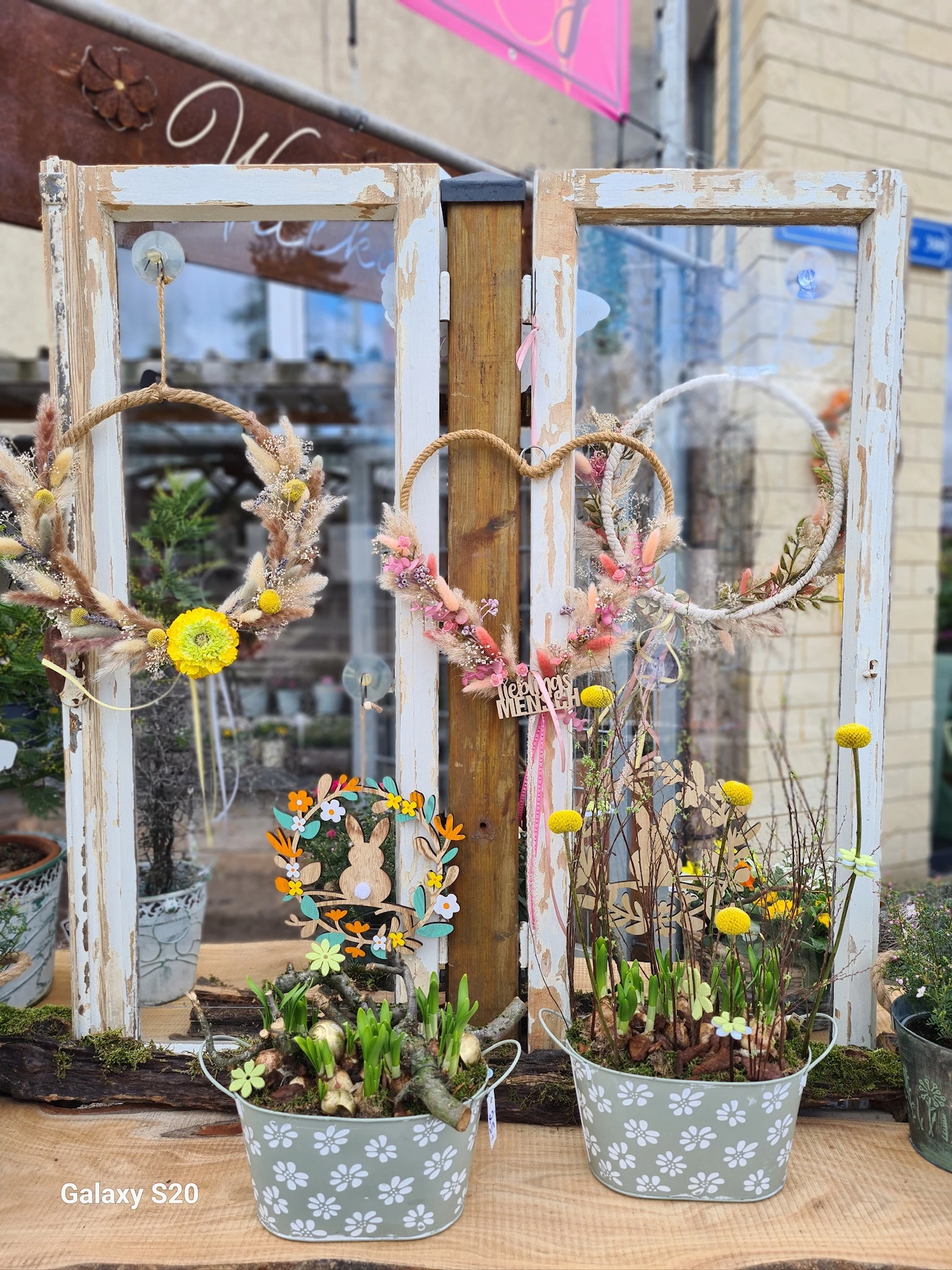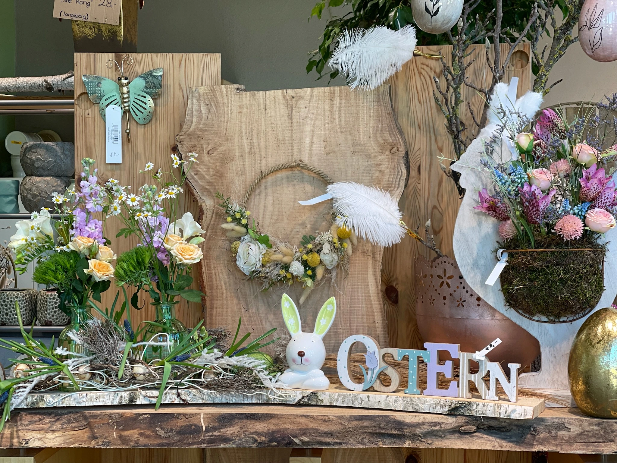 Ja, wir bieten handgefertigte Osterkränze mit frischen oder Trockenblumen, Eiern und saisonalen Dekorationen – perfekt für Haustüren oder als festliche Tischmitte.