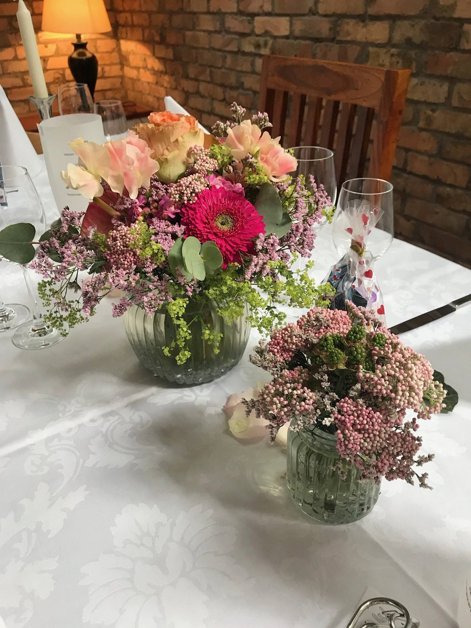 Ob im Restaurant oder im Familienkreis zu Hause – wir gestalten florale Dekorationen, die die Reinheit und Schönheit dieses Tages unterstreichen.