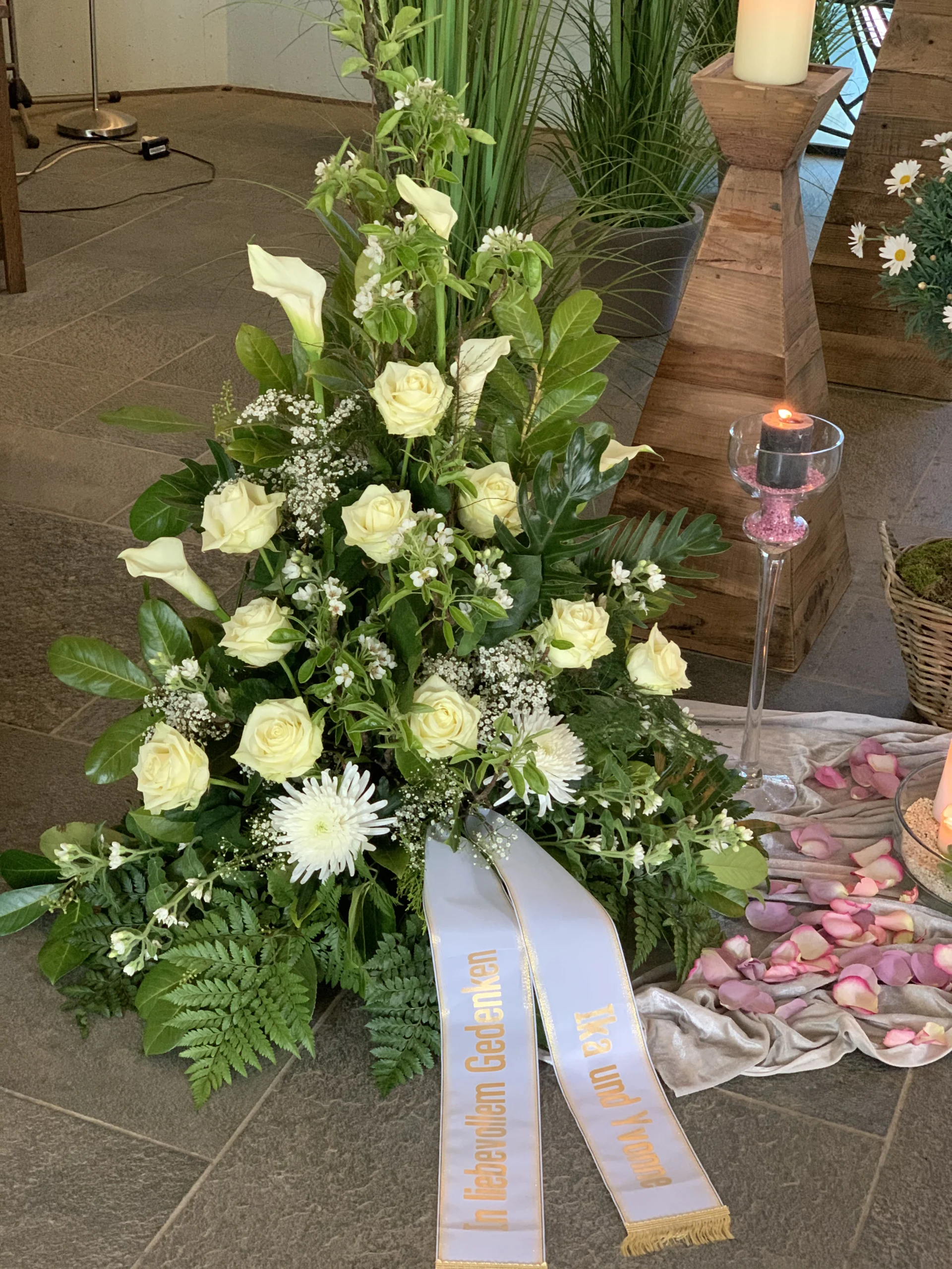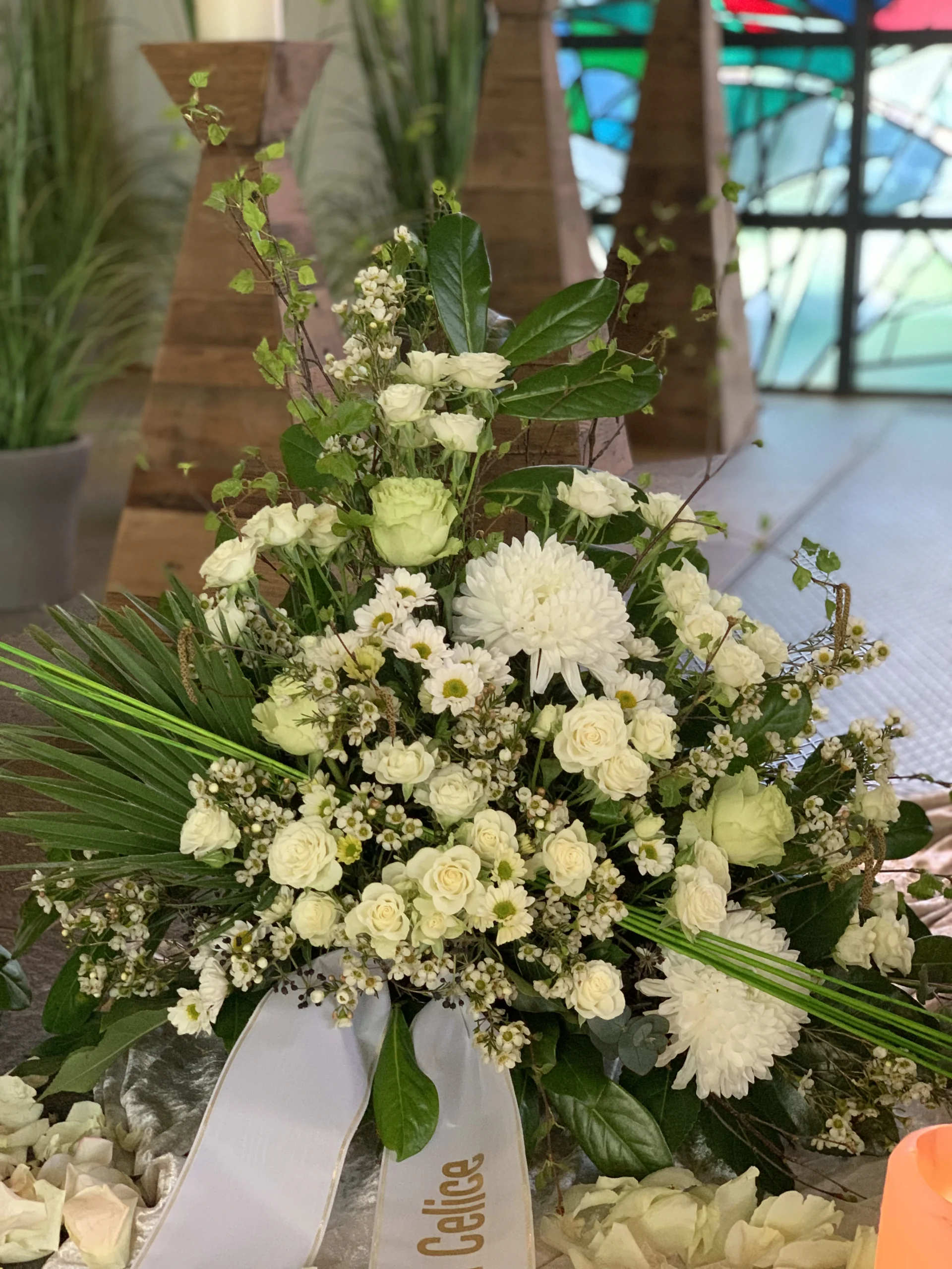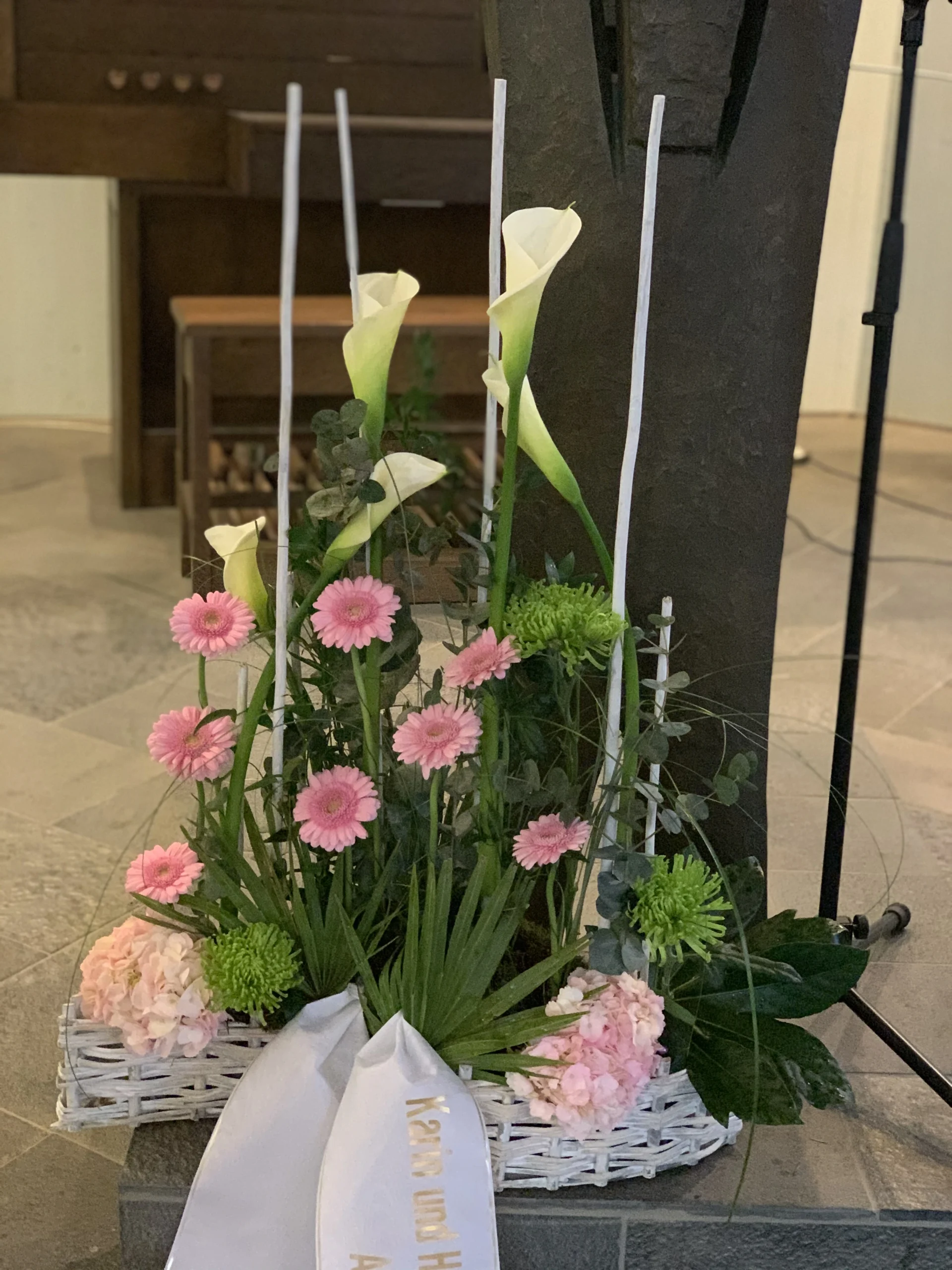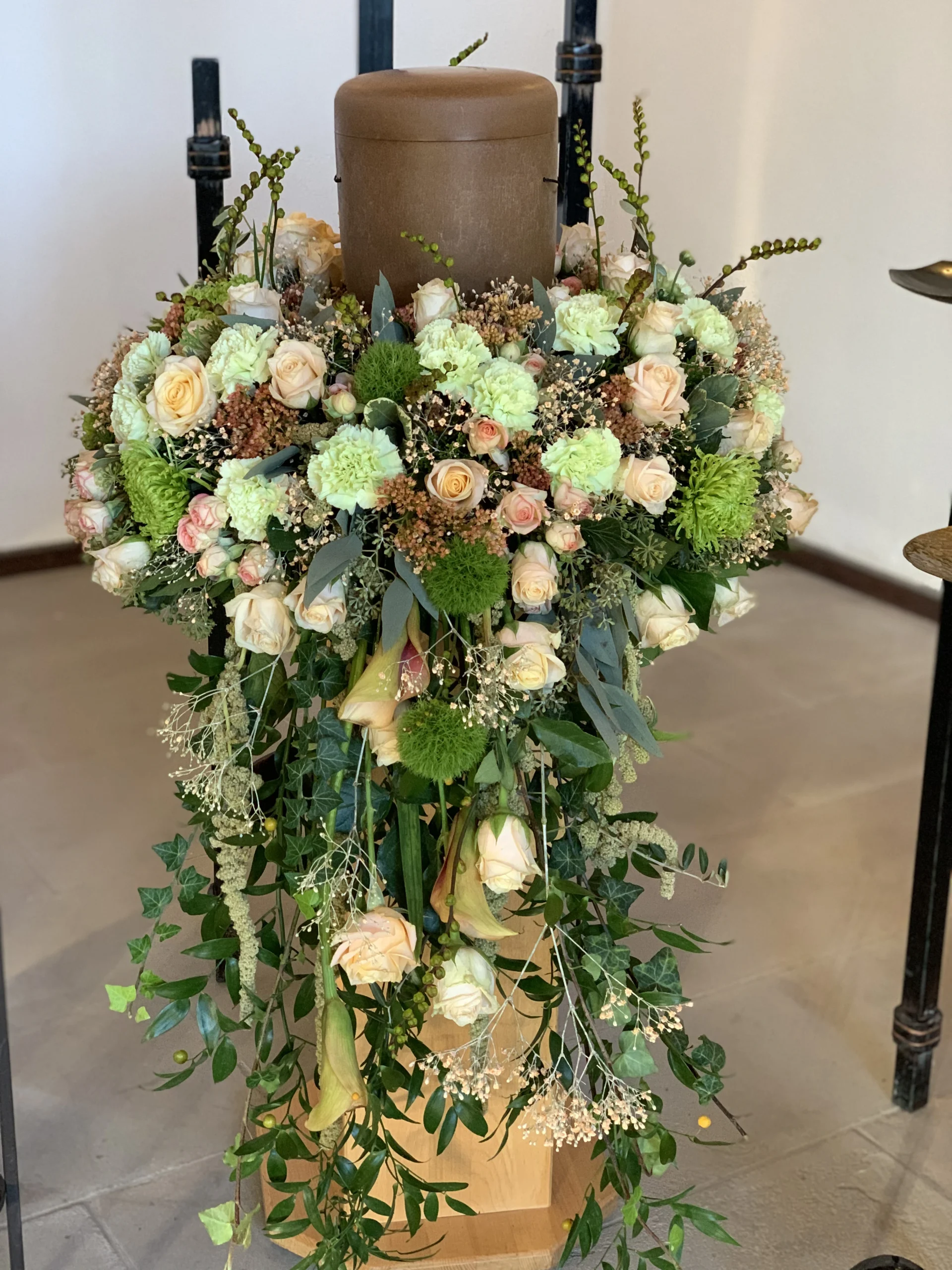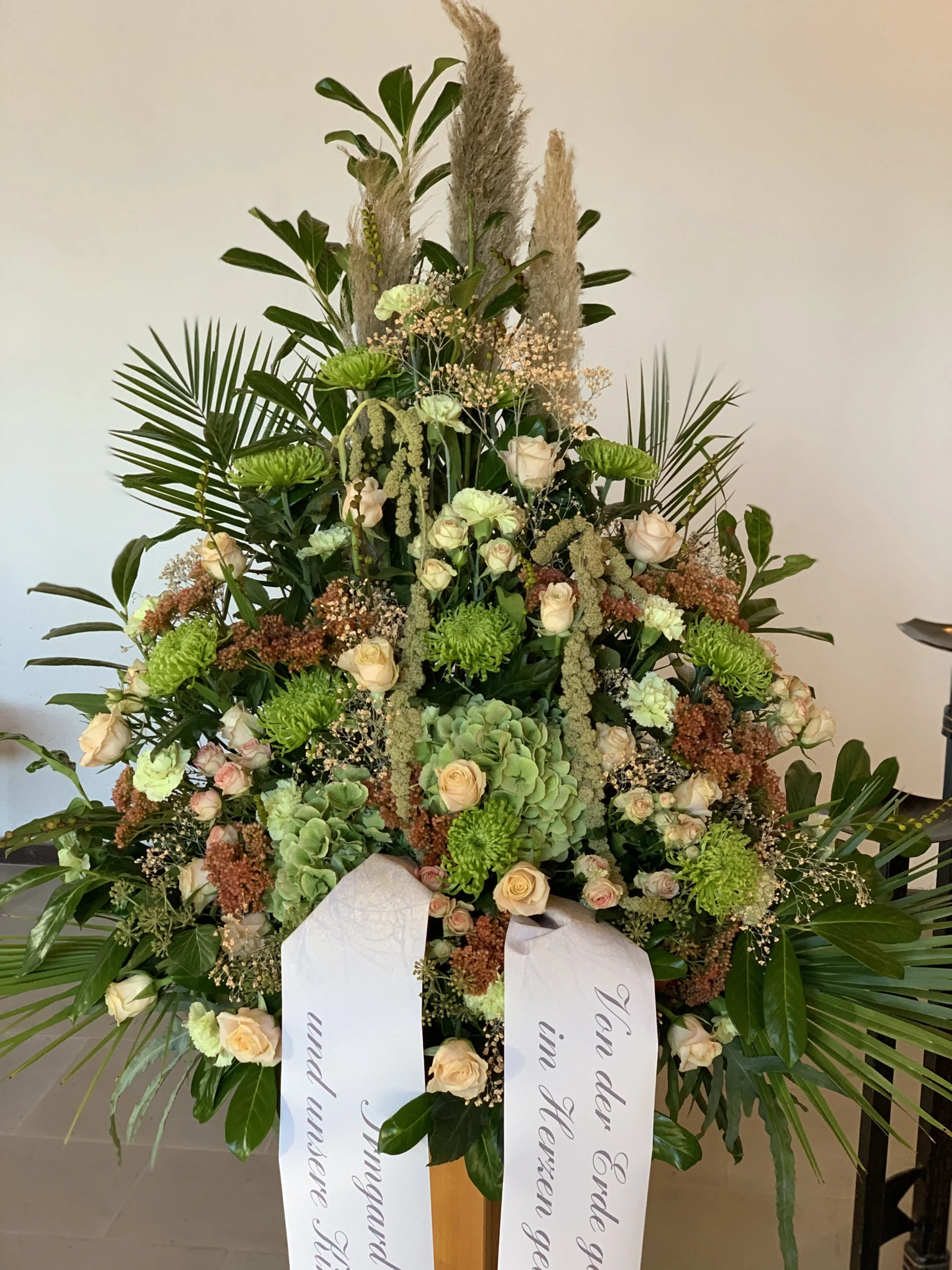 Florale Dekorationen für Kirchen, Trauerhallen und Gedenkstätten, die eine würdevolle Atmosphäre schaffen.