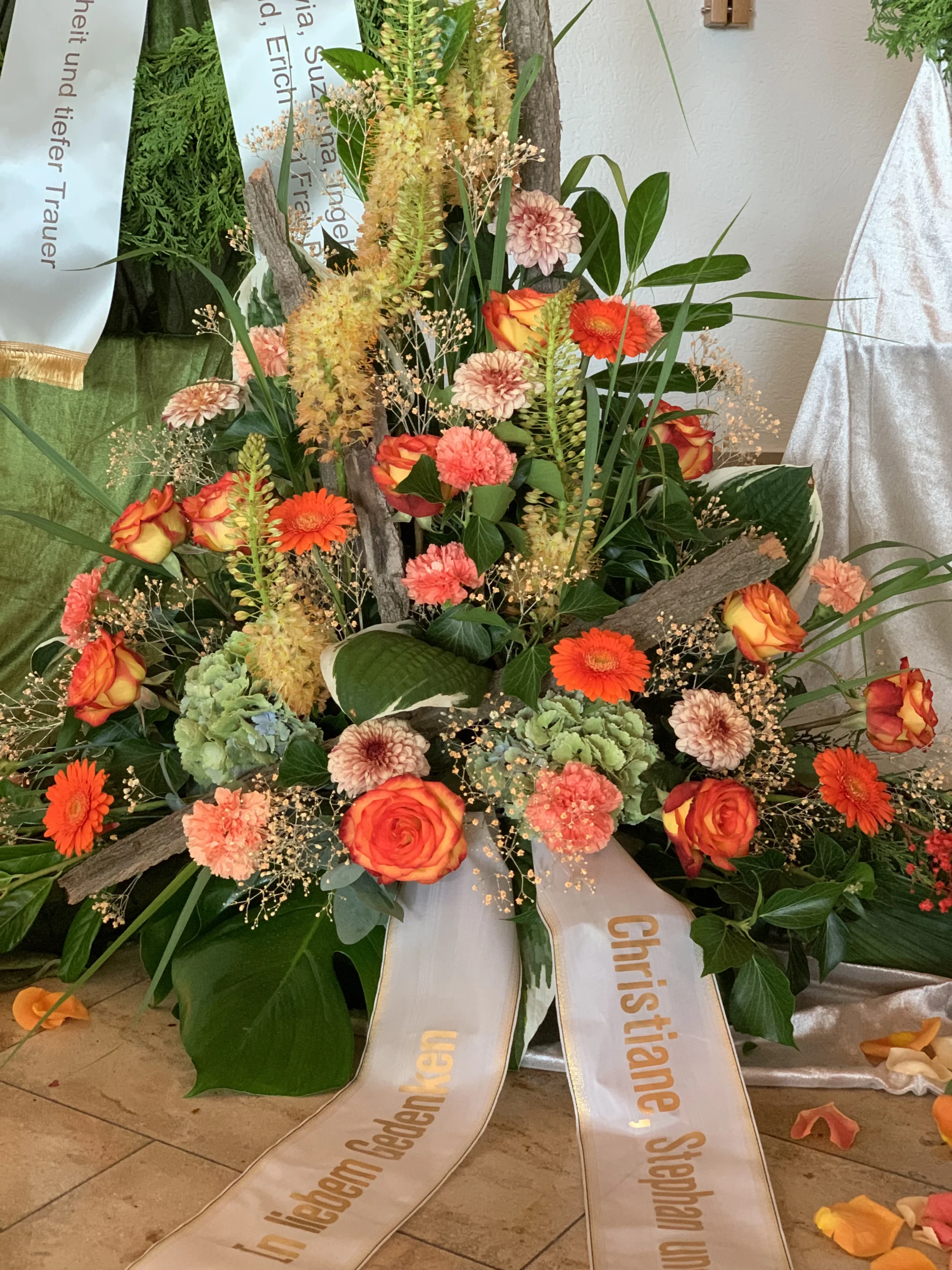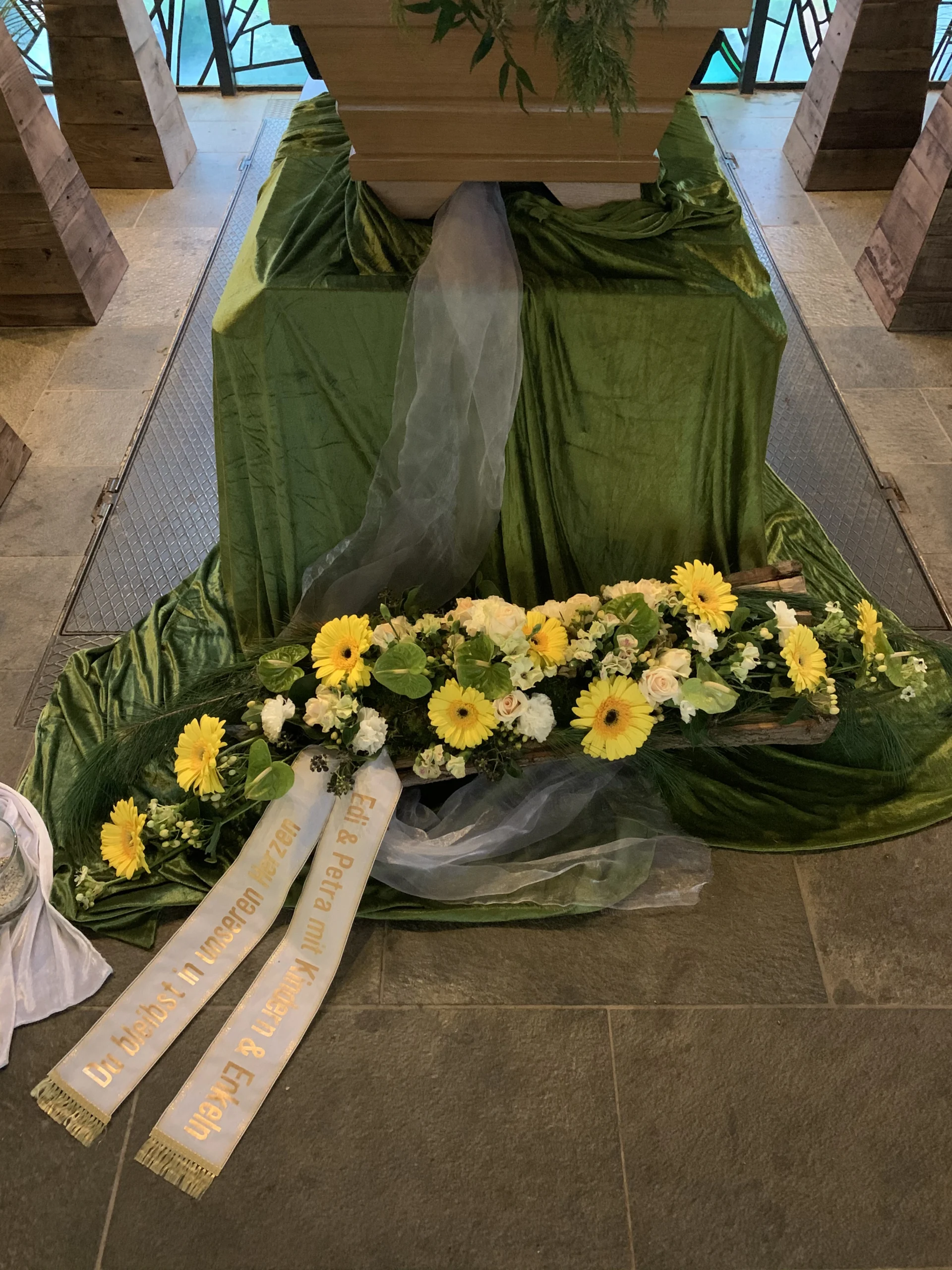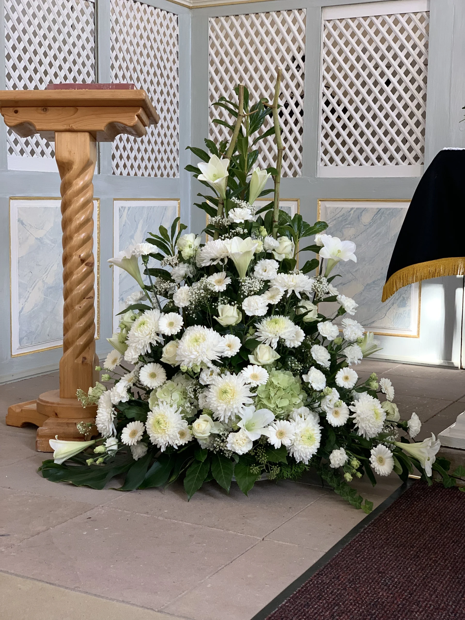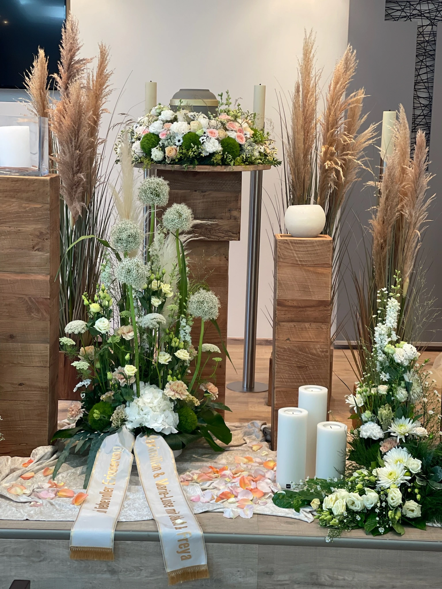 Florale Dekorationen für Kirchen, Trauerhallen und Gedenkstätten, die eine würdevolle Atmosphäre schaffen.