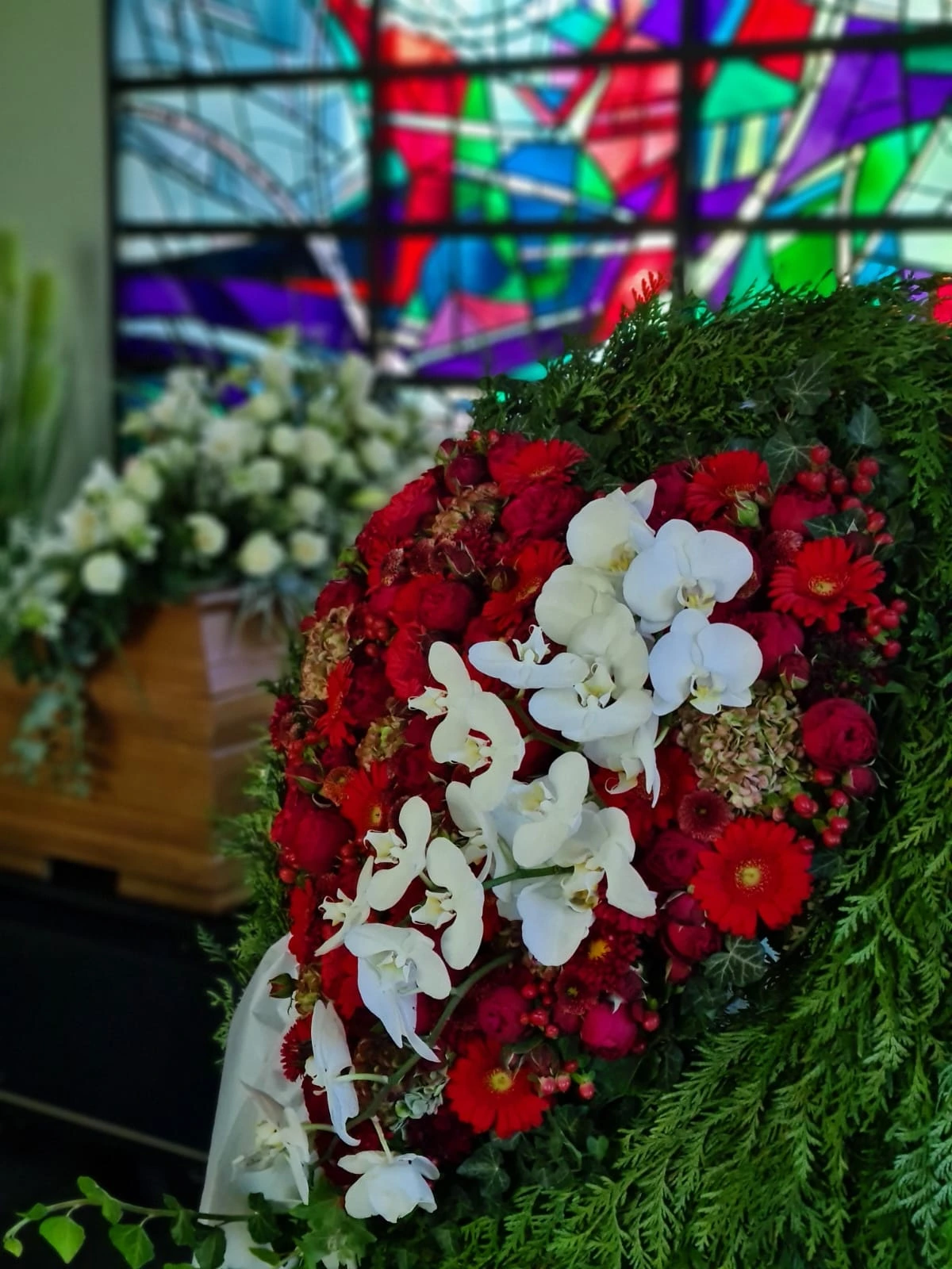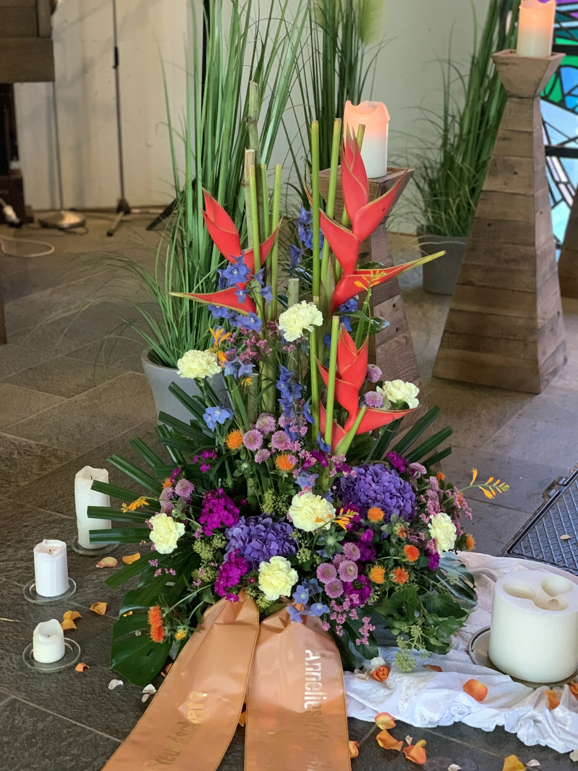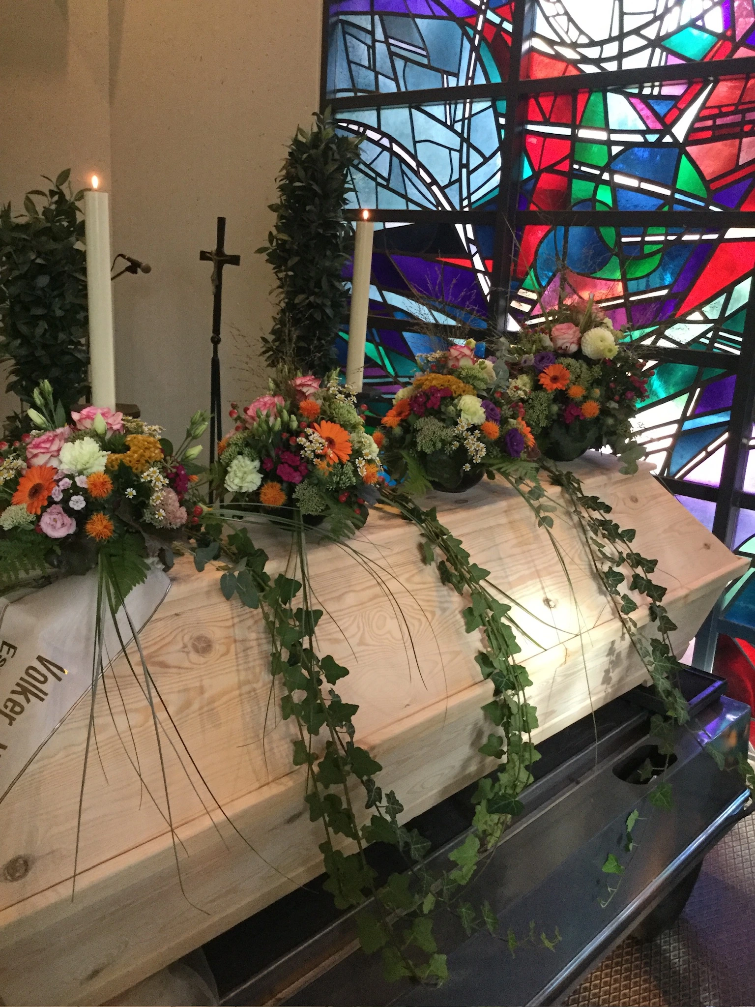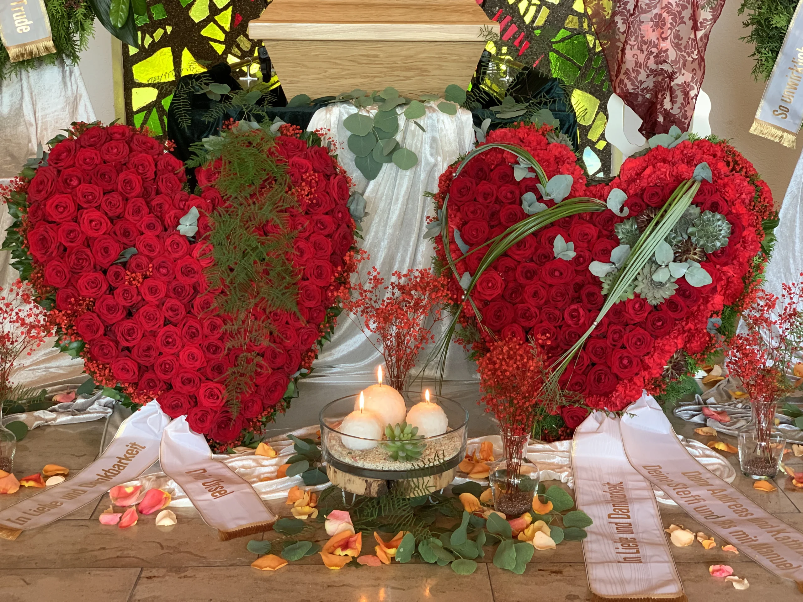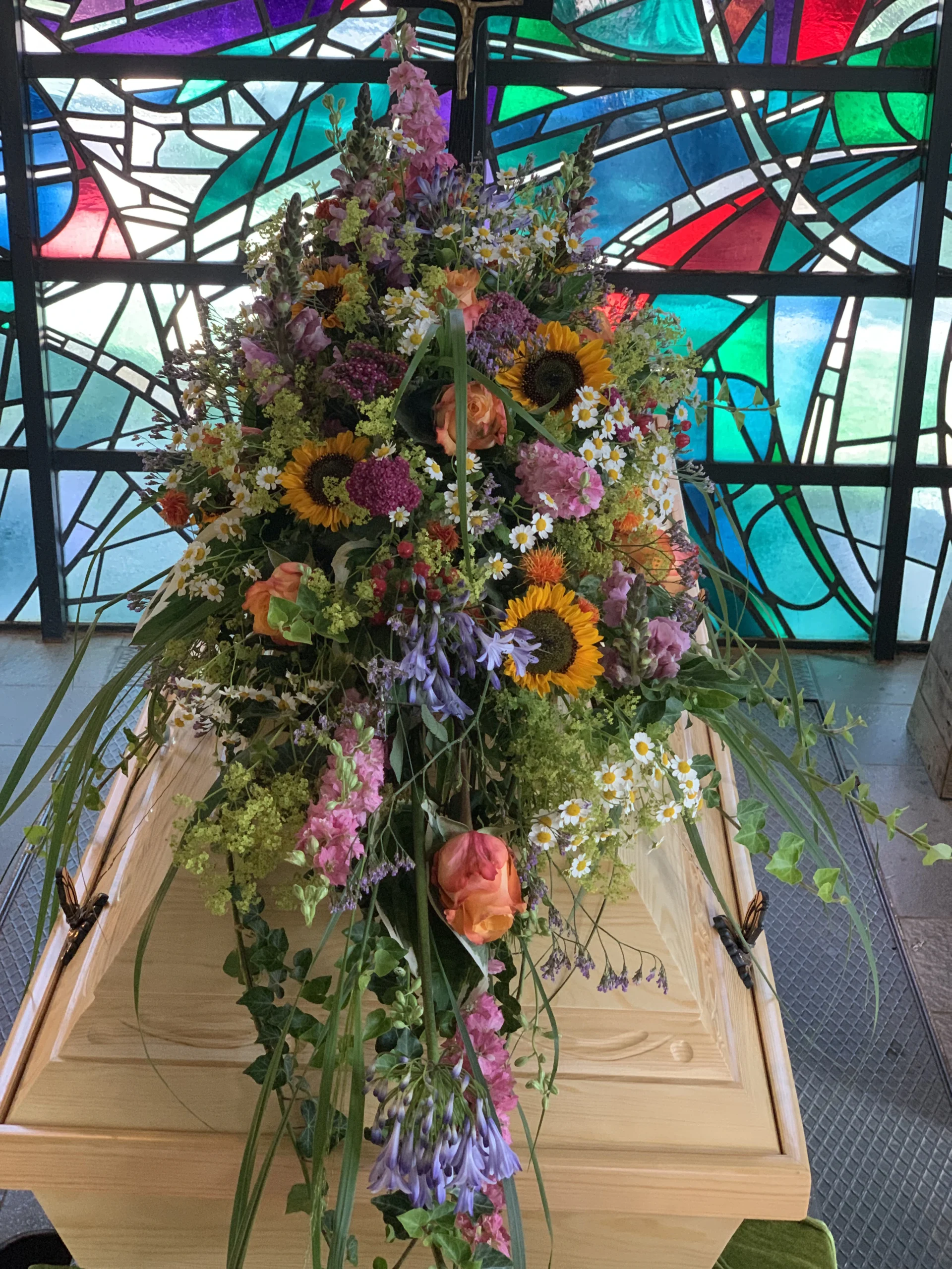 Florale Dekorationen für Kirchen, Trauerhallen und Gedenkstätten, die eine würdevolle Atmosphäre schaffen.