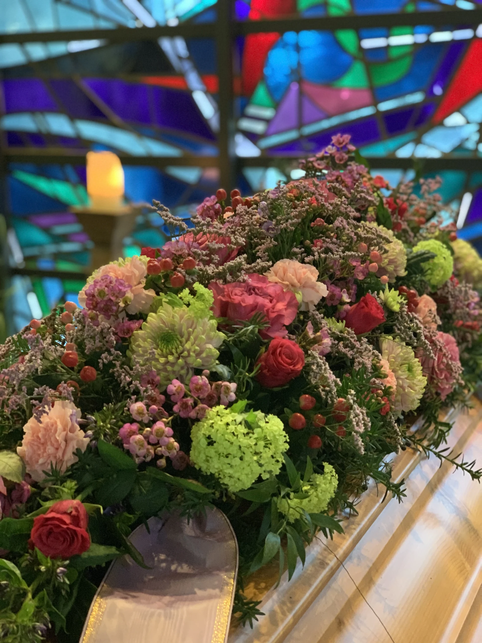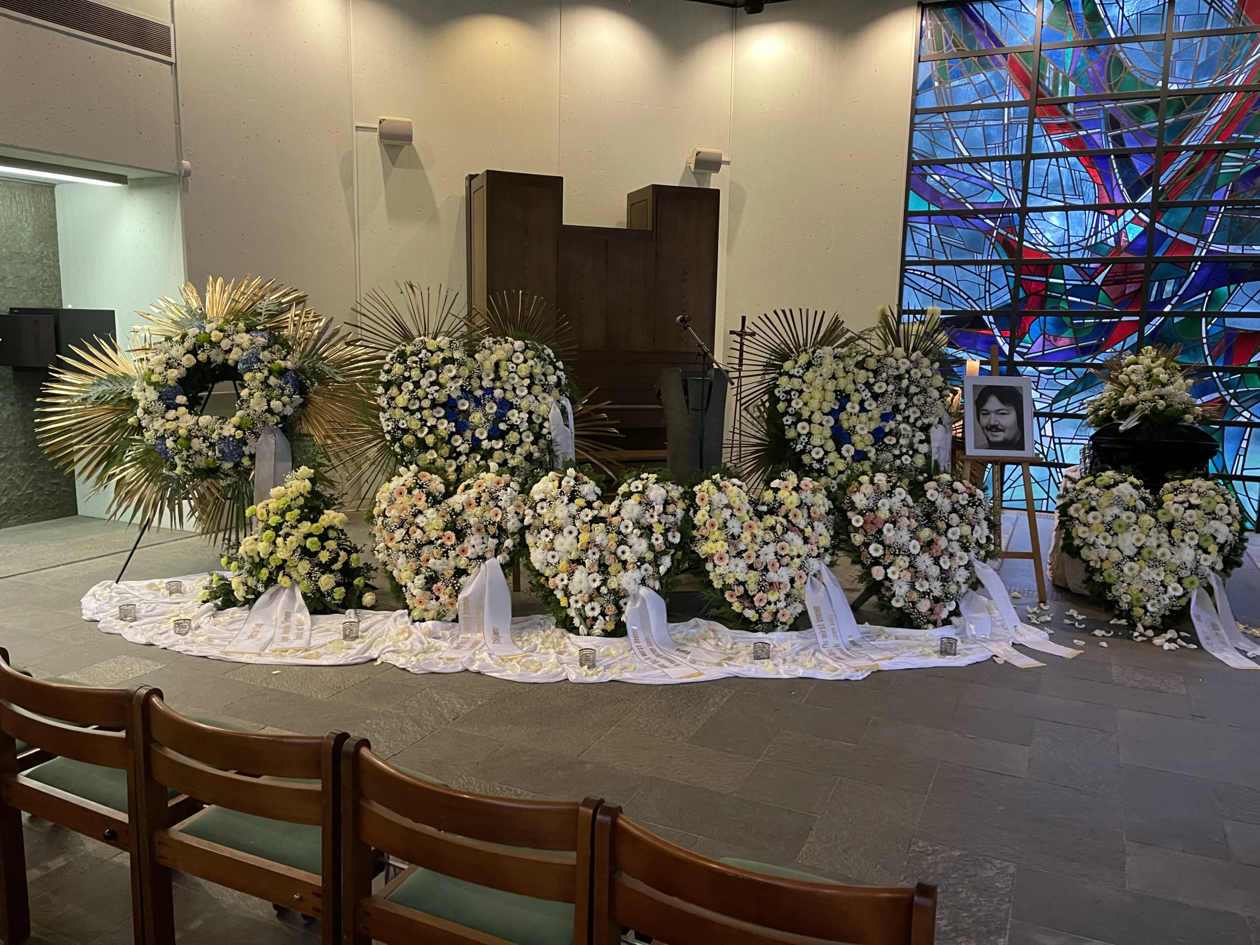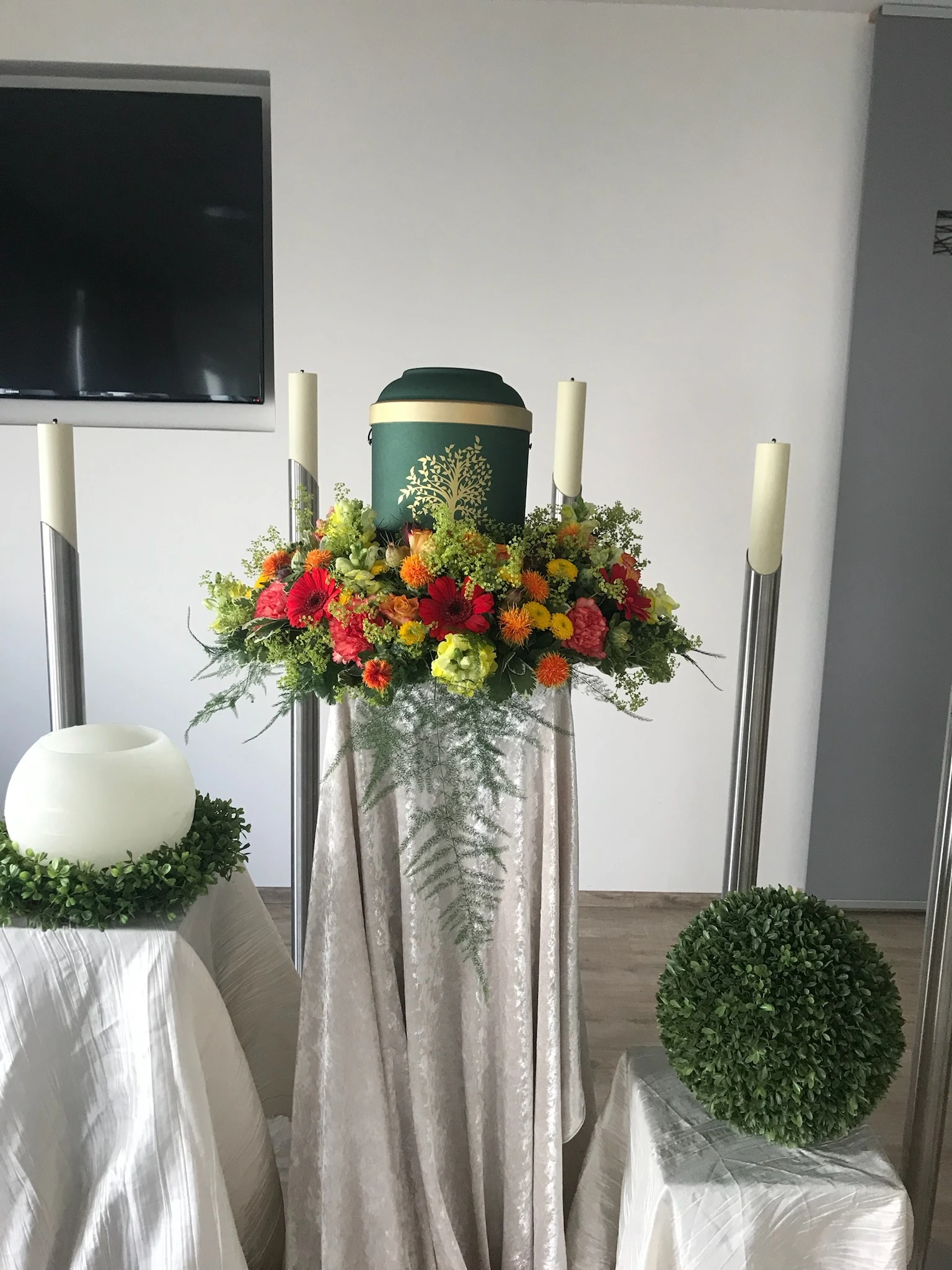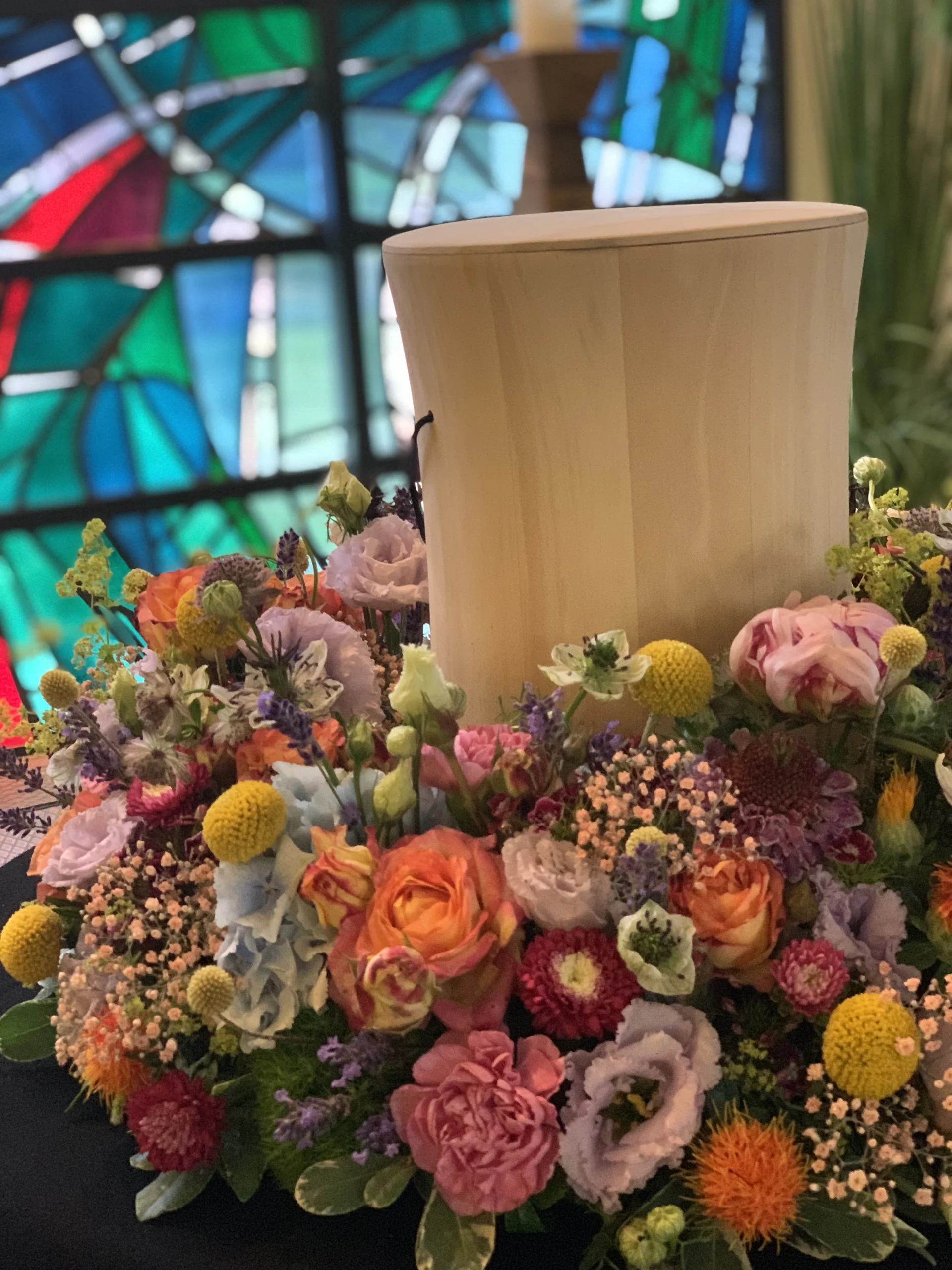 Florale Dekorationen für Kirchen, Trauerhallen und Gedenkstätten, die eine würdevolle Atmosphäre schaffen.