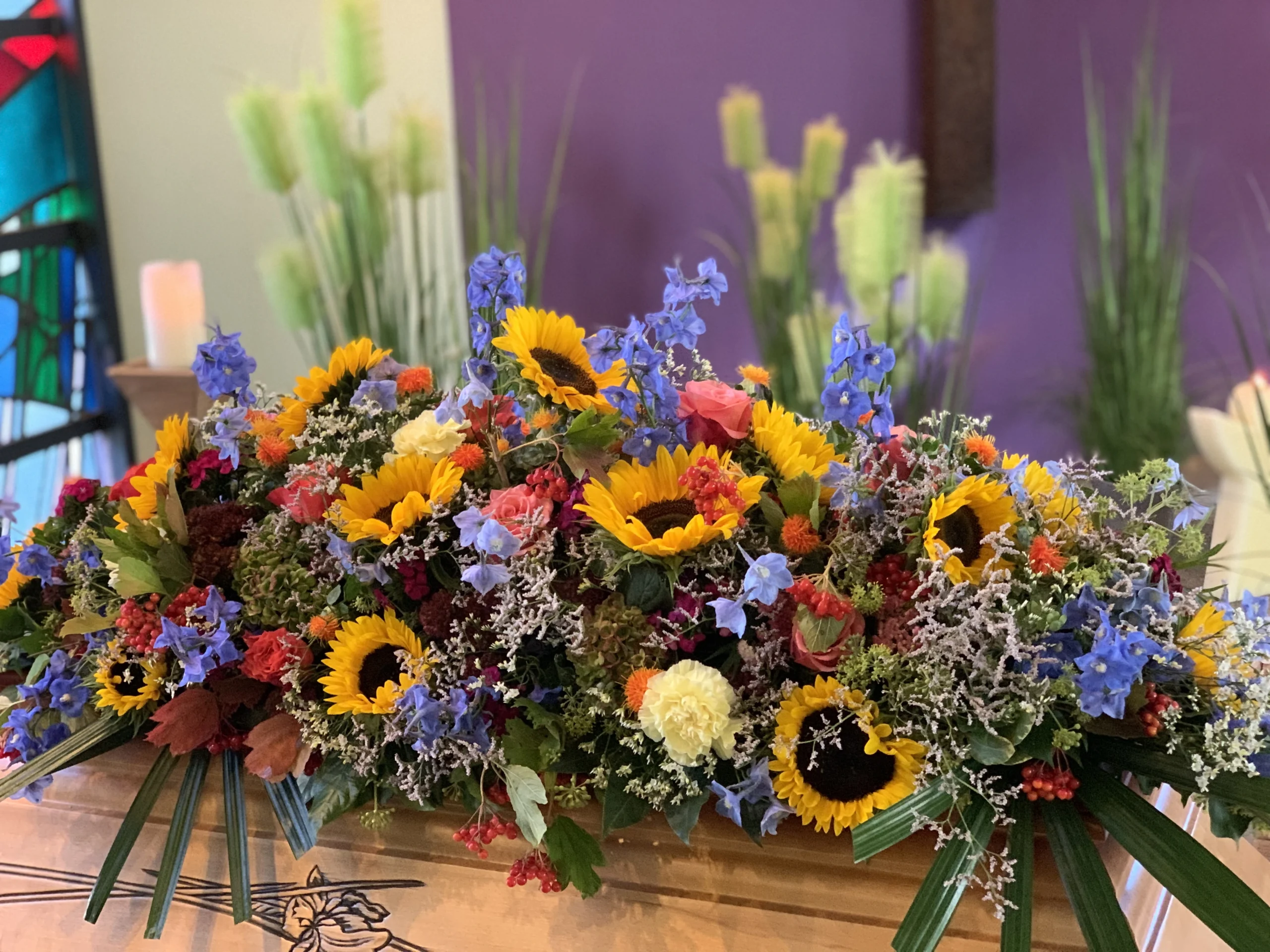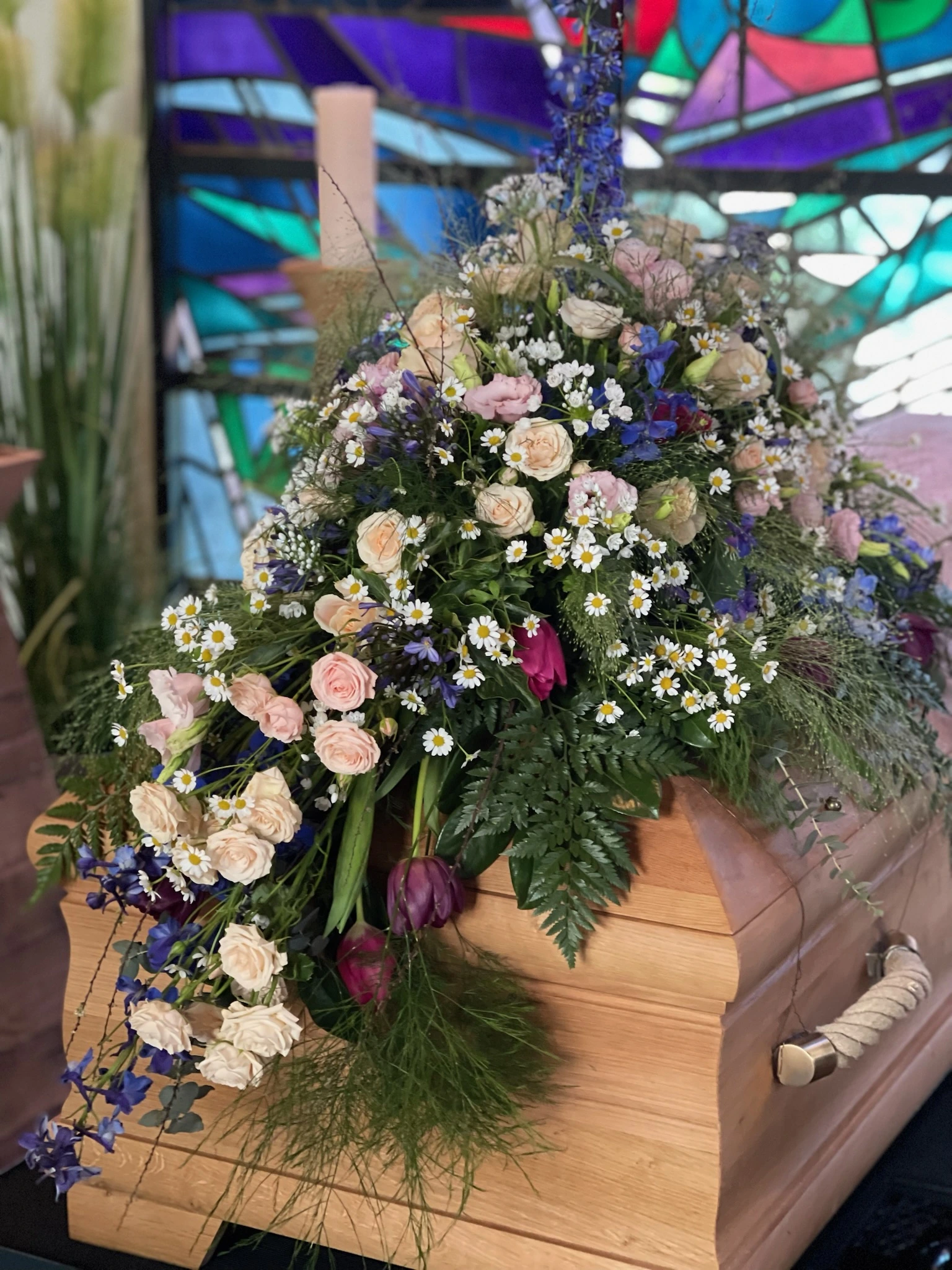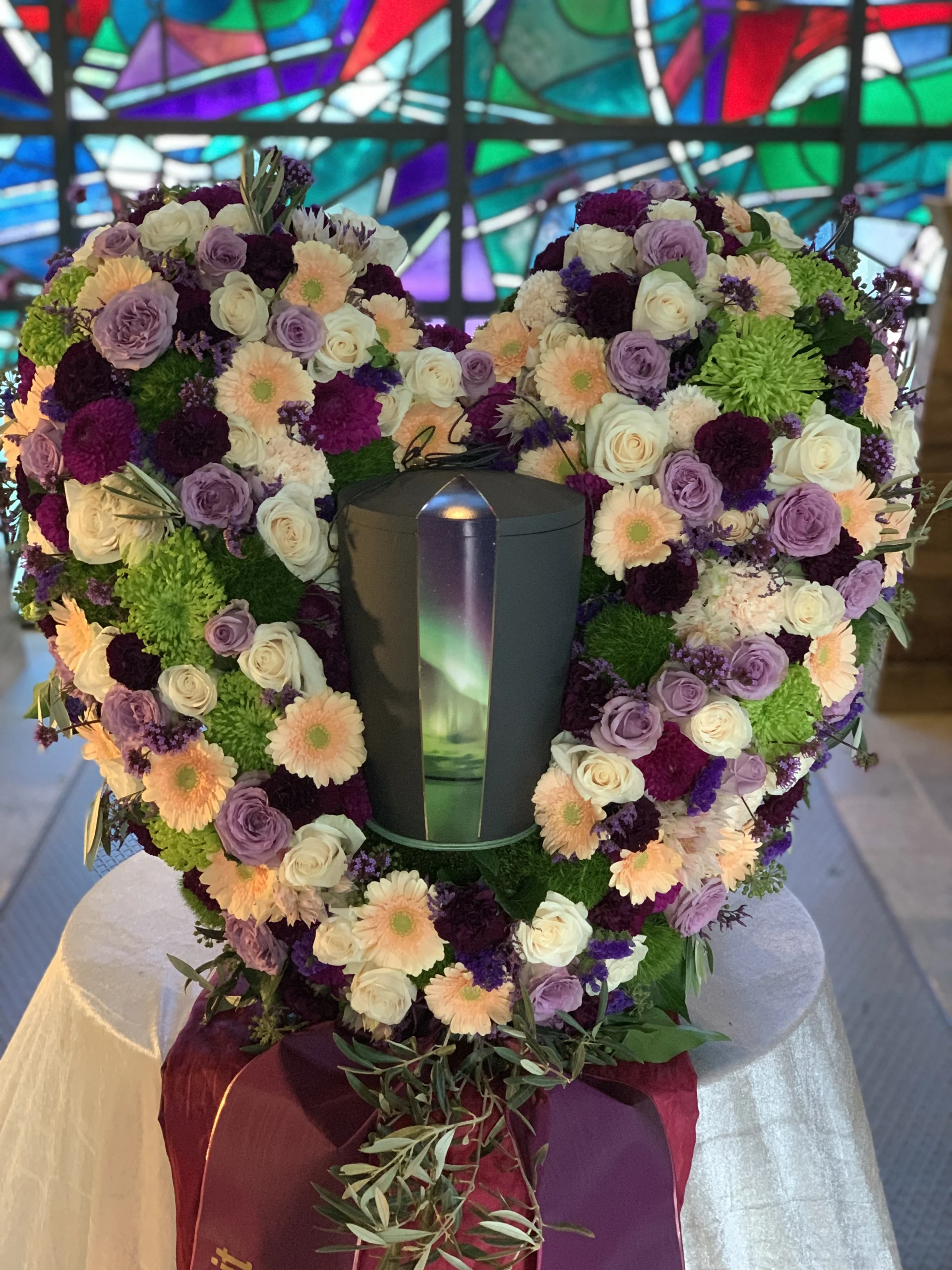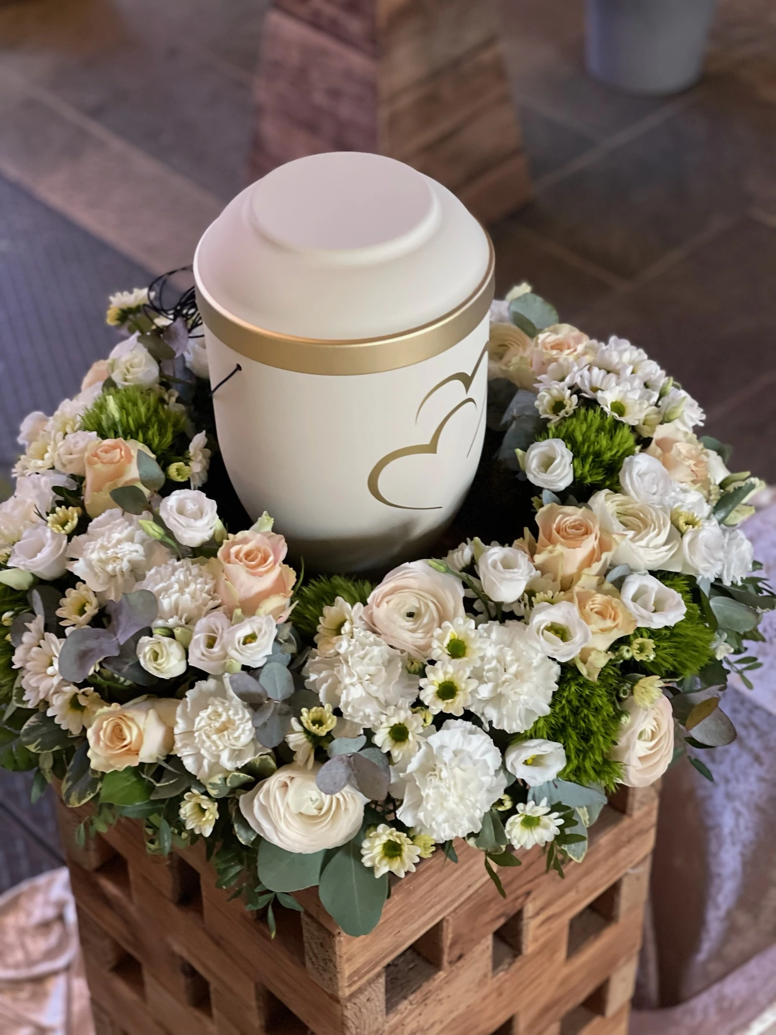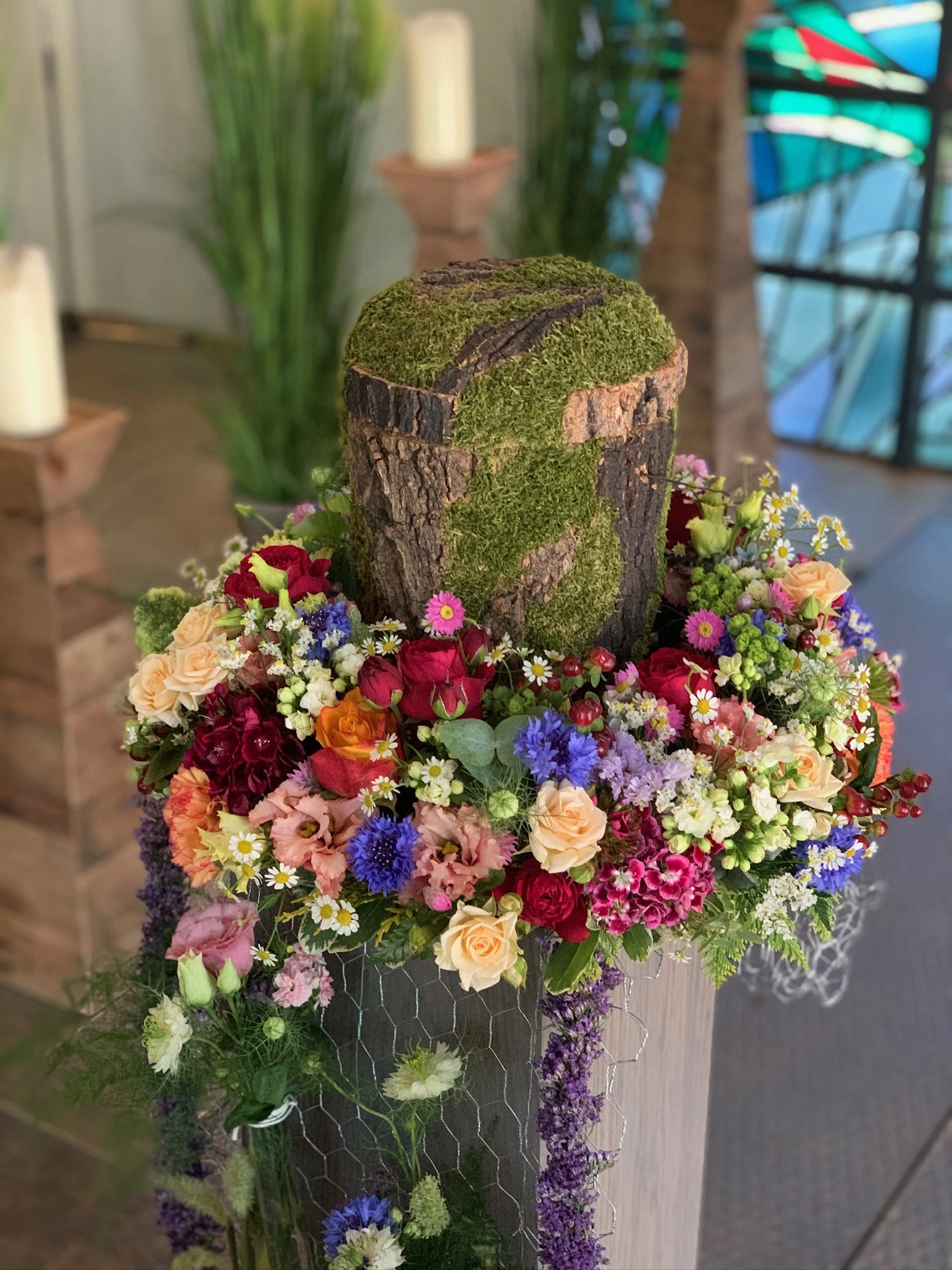 Florale Dekorationen für Kirchen, Trauerhallen und Gedenkstätten, die eine würdevolle Atmosphäre schaffen.